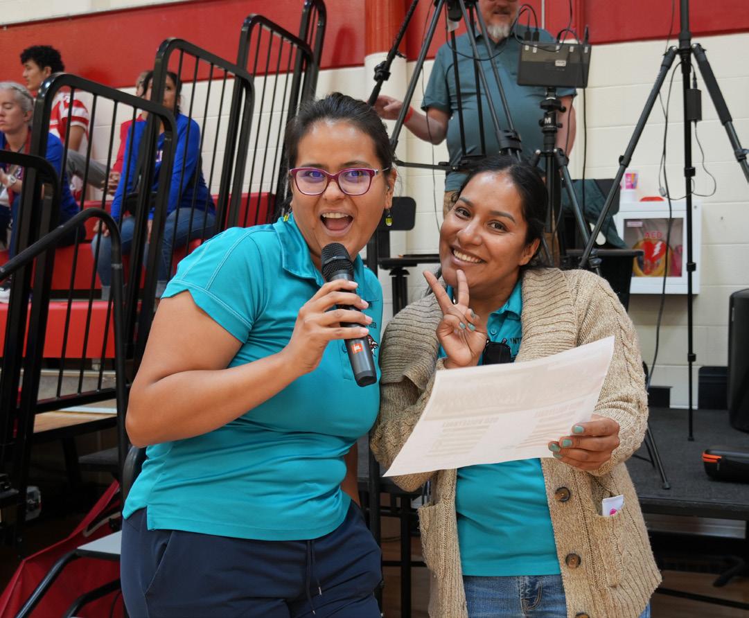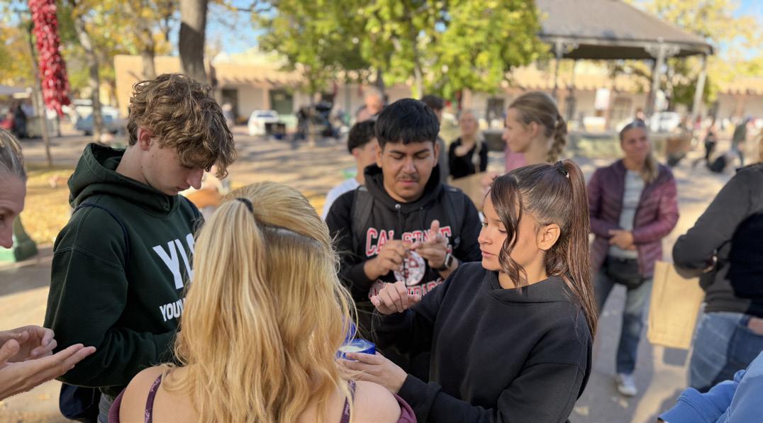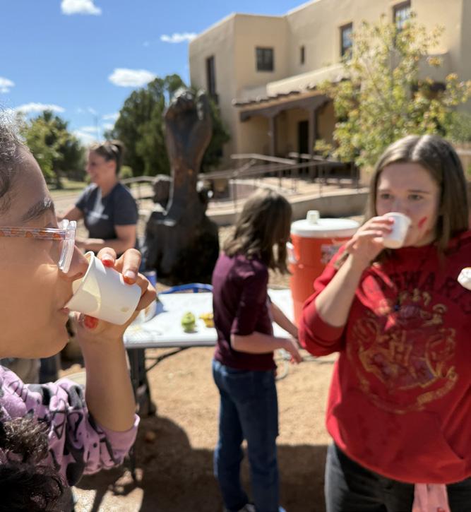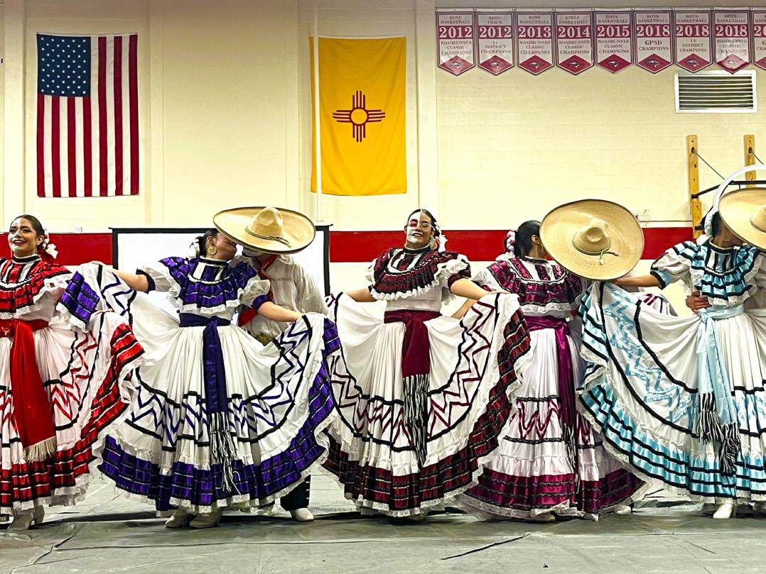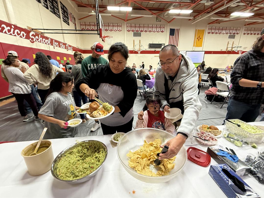 The aroma of food prepared by our families, paired with children’s laughter as they got their faces painted, filled the space. Approximately 150 people attended, including families, students, staff, and performers—an incredible turnout for a first-time event. Our MCs, Alex Gonzalez-Lopez and Nevaeh Garcia, opened the evening by introducing the Santa Fe Aspen Ballet Company, which performed three traditional folclórico dances. After a vibrant display of swirling dresses, sombreros, and machetes, attendees lined up for a feast featuring enchiladas, rice and beans, tamales, gorditas, posole verde, elote en vaso, chile colorado, pan dulce, cake, and homemade cinnamon cider. As always, the food became a