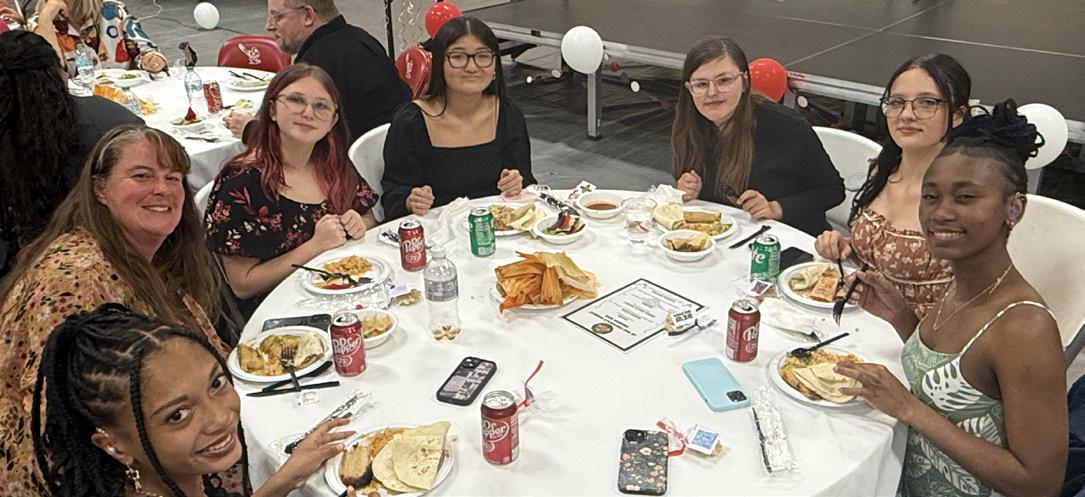 While many people looked forward to our traditional celebration of Mexican Independence Day, a beloved community tradition, we chose instead to explore a holiday celebrated by many Spanishspeaking countries around the world: el Día de los Muertos (Day of the Dead). Thanks to the hard work and support of the organizing committee (Ana Duran Prado, Silvia Sotelo, Claudia Hernandez, Lorena DávilaQuiles, Nataly Fonseca-Cole, Uriel Torres, and Roddy Cabbage), we proudly hosted the first NMSD Los Día de Muertos celebration. Larson Gym came alive with color—from papel picado strung across tables and walls to cempasúchil flowers at the feet of handmade catrina centerpieces glowing by candlelight.