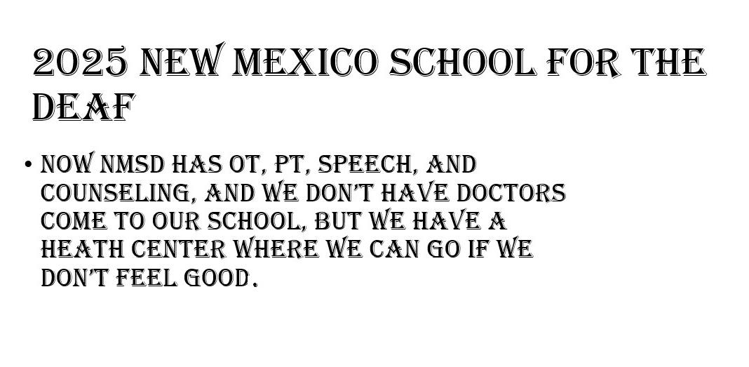 Our success is made possible by the dedication of educators, specialists, and support staff across every department. I also recognize with deep gratitude the critical role of the Office of the Governor, the New Mexico State Legislature, the Department of Higher Education, and our partner state agencies, whose continued support allows us to carry out this mission as envisioned in the New Mexico State Constitution. Their investment ensures that Deaf and Hard of Hearing children across New Mexico have access to opportunities that were unimaginable in 1885.