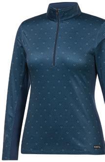 This lightweight, sporty long sleeve base layer top features Kwikwarm™ technology to harness body heat for warmth, while the quick-drying, anti-microbial fabric ensures all-day comfort. Raglan sleeves and flat-seam construction provide a flattering fit, with Coolpass™ panels managing moisture in high-sweat zones. A subtle tonal bit print runs down each sleeve adding a “bit” of equestrian flair.