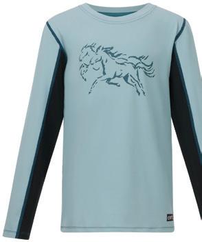 Made for kids on the move, this high-performance base layer delivers warmth, breathability and comfort wherever the day takes them. Soft, four-way stretch fabric supports unrestricted motion, while Kwikwarm™ volcanic ash fibers trap body heat for lightweight insulation. Coolpass™ panels enhance breathability, and smooth flat seams make layering effortless. Finished with Kerrits exclusive “Giddy Up” horse design for a playful touch.