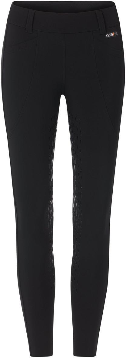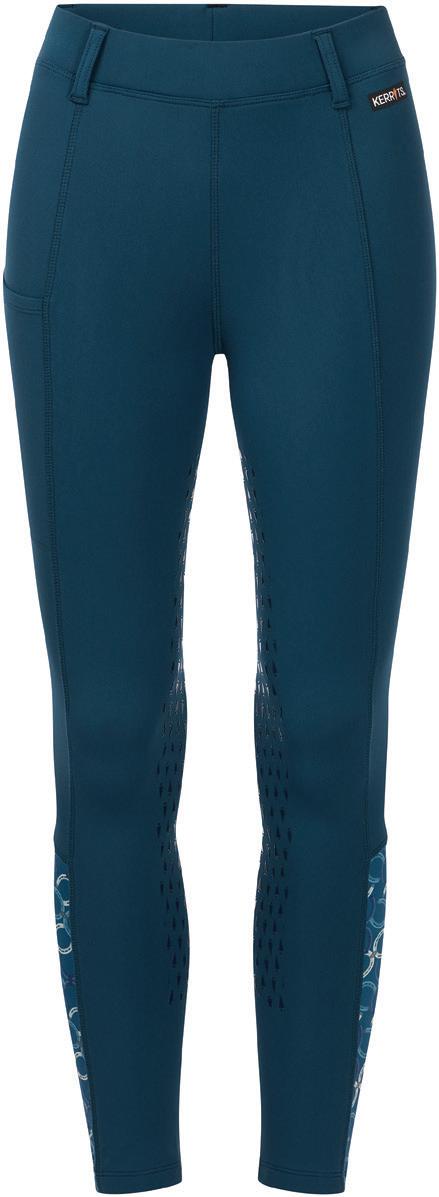 A snuggly step up in warmth, these comfy riding tights feature a stretchy knit, engineered with light compression and a brushed fleece interior perfect for cool weather riding. Performance-enhancing, athletic detailing includes a higher rise, wide comfort waistband and two pockets easily accessed in the saddle. Silicone Kerrit Sticks™ along the entire inner leg provide comfy security.