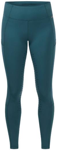These technical riding tights deliver cooling power, confidence-boosting coverage, and figure-flattering support. Designed with active equestrians in mind, these tights are engineered to maximize performance through thermoregulation with Coolcore® Biomimetic Fiber Geometry™. The fabric effeciently wicks and evaporates moisture to help maintain a comfortable, dry feel in varying temperatures. Less sweat. Fewer odors. Kerrit Sticks™ Silicone adds functional half seat styling with full leg grip from inner thigh to calf. The two-inch comfort waistband with belt loops transitions from sporty to polished, while two side pockets provide space for a phone.