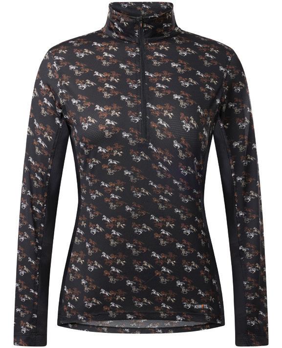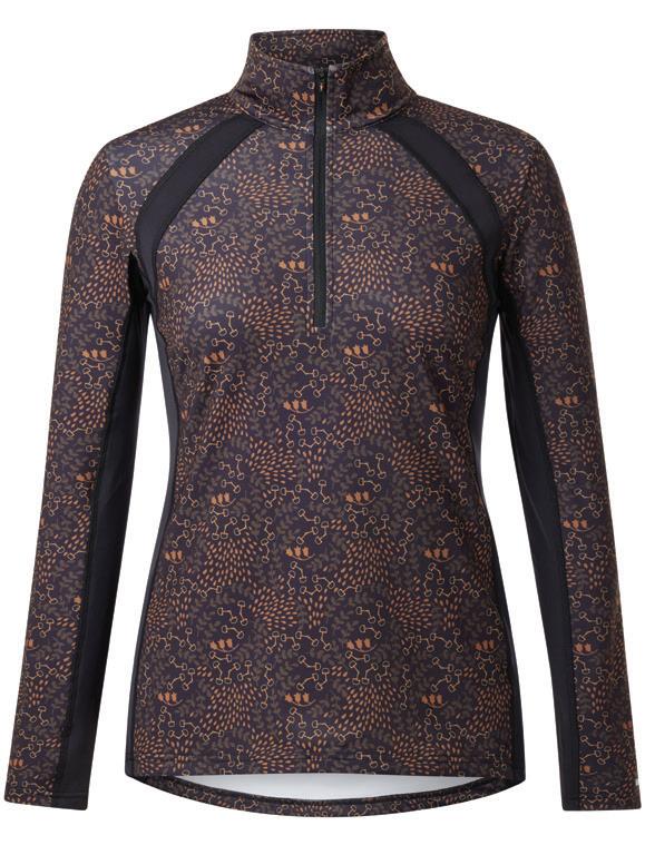 New! Rail Side Quarter Zip Tech Top – Print #40700P • $74 Black Starlight, Leather Snaffle Harmony, Sangria