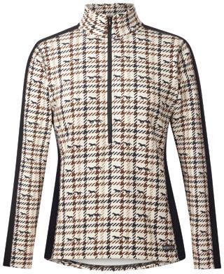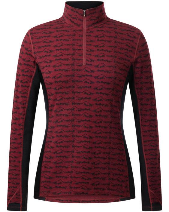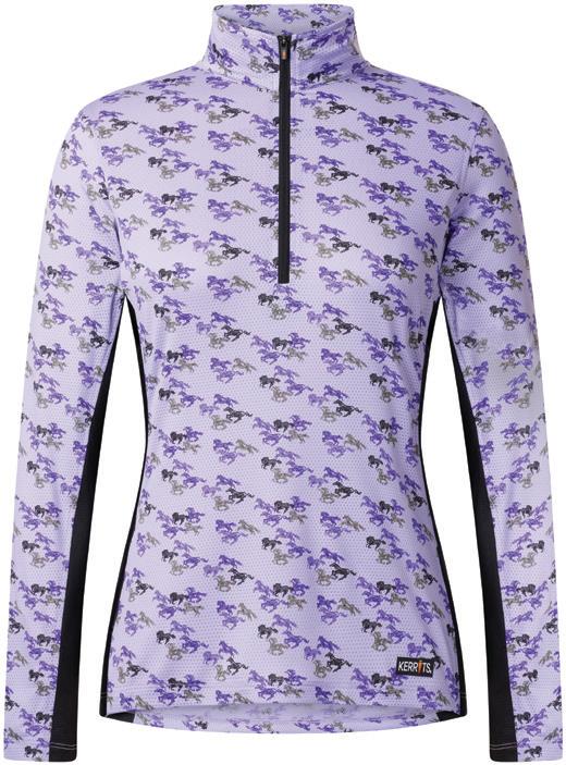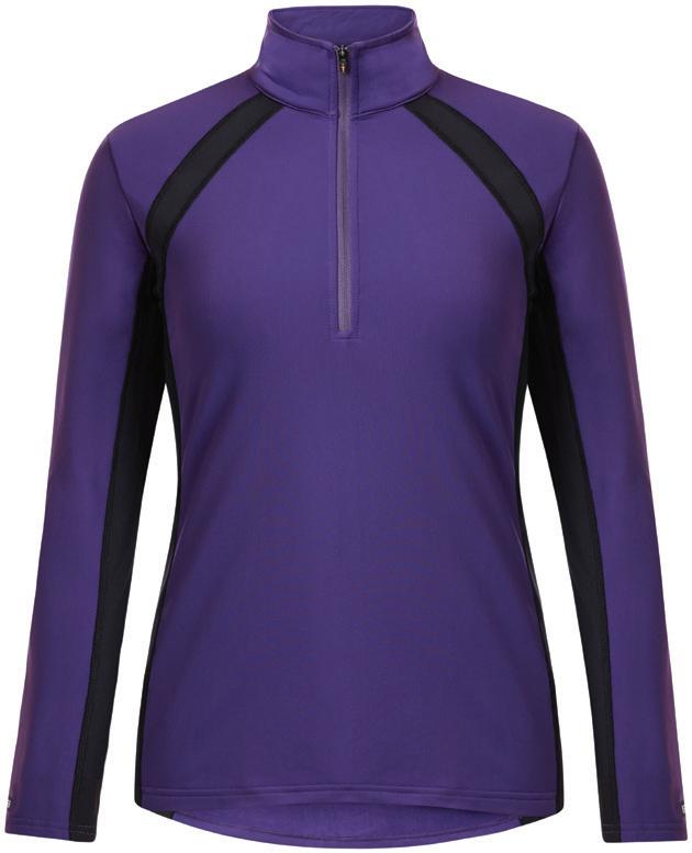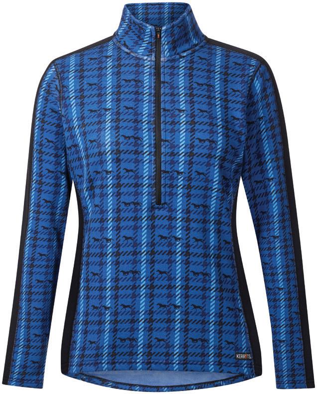 Create your own winter style in these exclusive equestrian prints. The eye-catching colors and patterns flatter, providing a fun pop of color and texture to your favorite riding outfit. Brushed inside with buttery soft microfleece for wicking warmth, this lightweight, performance top features a smooth exterior that sheds hay, horsehair, and dirt. Sporty contrast panels flatter, while the quarter zip provides easy thermal regulation to keep you comfy from warm-up to cooldown.
