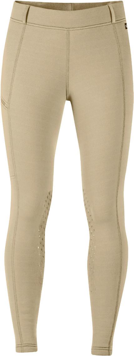 For gallops through snow or shoveling their way out to fetch their steeds, our warmest kids riding tight keeps kids cozy and comfy. The durable Polartec® Wind Pro® brushed fleece interior warms, while the water and wind-resistant exterior insulates and deflects snow, wind, and dirt. GripStretch™ Suede knee patches add security while fleece-lined lower leg panels fit easily into boots.