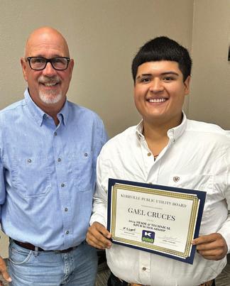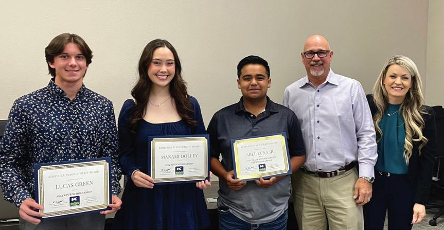 KPUB is pleased to announce that four local seniors, Lucas Green (Tivy High School), Manami (Ally) Dolley (Tivy High School), Abel Luna (Ingram Tom Moore High School) and Gael Cruces (Tivy High School), are the utility’s 2024 scholarship recipients.
