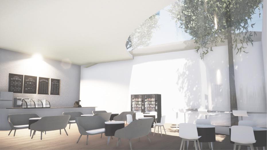 second which leads to the basement, and third which leads to the restaurant. Multimedia room and office are located at the basement. The multimedia room is located at the basement as it doesn’t require any sunlight. Employees can also directly access the office without having to pass the lobby area.
