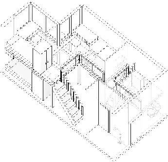 entrance to the residence is located on the south side of the building. The first area is the private working space, where the pottery artist creates their pottery models. There is a private table, molding space, pottery wheel, and a shelf to display their is located under the stairs that lead to the second floor. The second floor functions mainly as a house, with a kitchen, a living room, and a bedroom.
