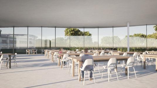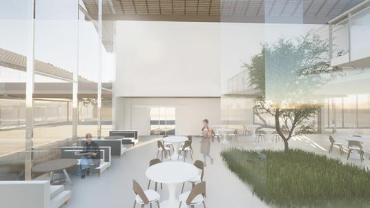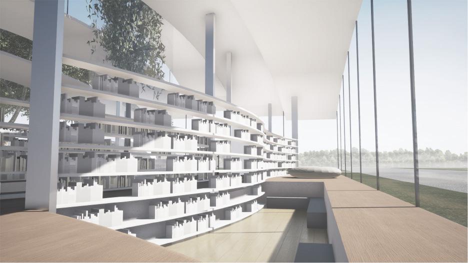 FLOW is a library that utilizes the concept of people’s This concept was developed from the flow concept of the Barcelona Pavilion, where people decide their own way tween the walls. Similarly, this library is also an open space, where the bookshelves “act” as the walls. The shape itself is inspired by opened book pages. All the outdoor walls use glass material to make the space feel wide and to give people the feeling of reading in nature.