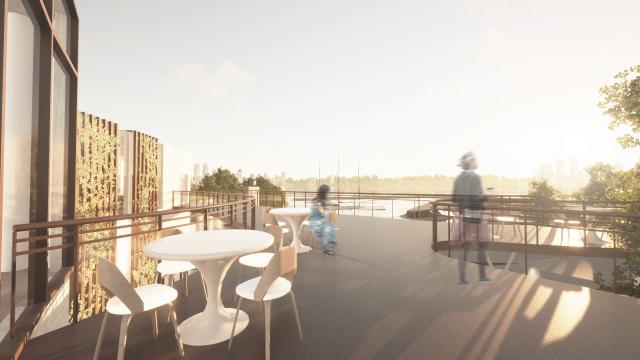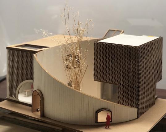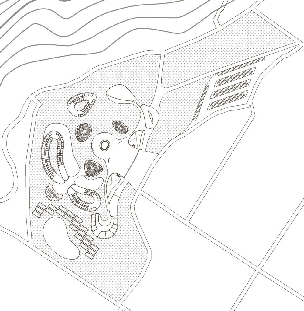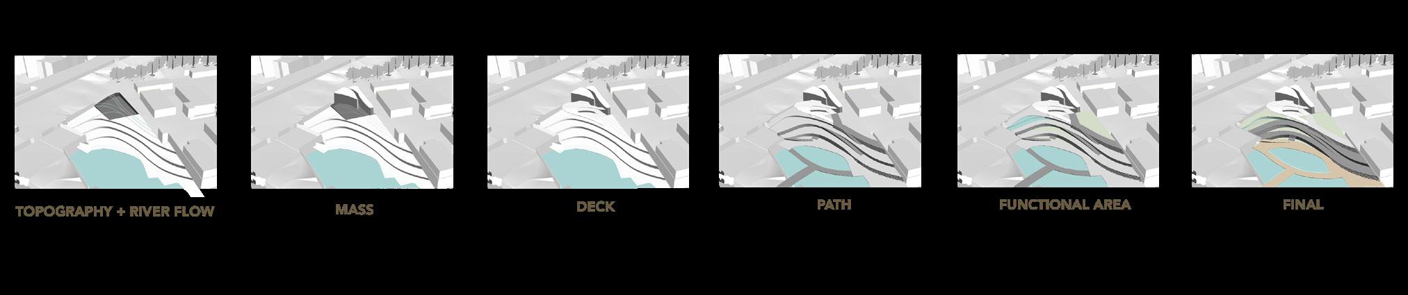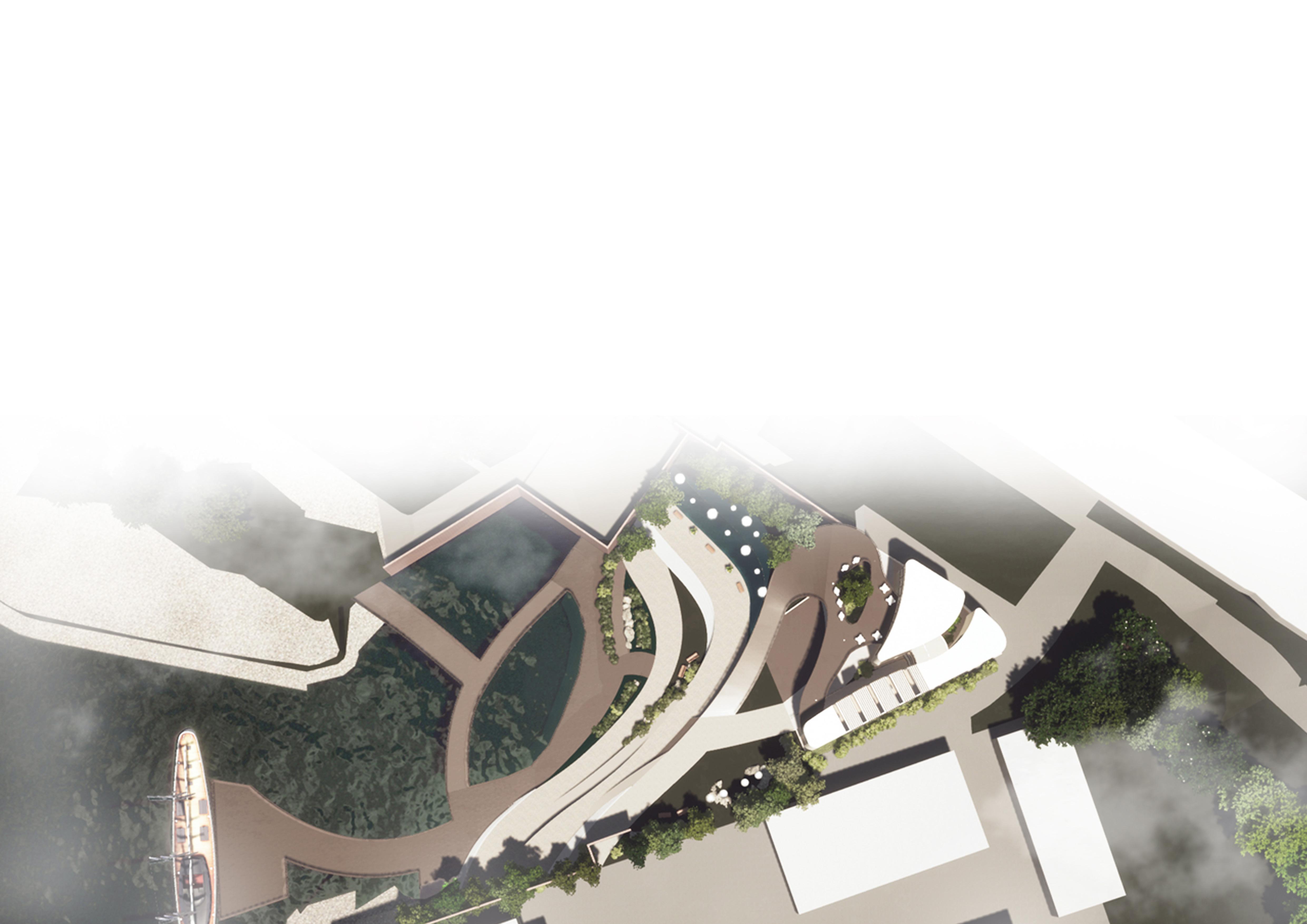 project focuses on both landscape and building design. Located at Tamsui, the landscape is designed to fit in and to connect with Tamsui River, the most famous spot in Tamsui. The concept of the landscape design is derived from the topography lines of the site. The flow of the landscape pathway is designed according to the height difference between the river bank and the building site.