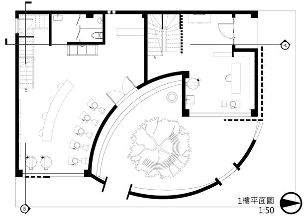 The basement area is functioned for cafe, office, and toilet. The cafe is near to the relax reading area to let visitors easily buy some snacks to eat while reading.