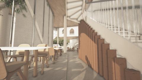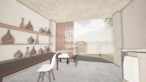 This building is designed for pottery artist as their workspace and living house. The concept of this building’s shape is de rived from the process of making a pottery. The curved wall in front which is the main attraction of the building is shaped like an opening of a pottery, this allows people to feel like they’re inside of a pottery when they get in, creating a great first impression. This building is divided into two area: left and right, which is the workspace and the living house. The division allows both space to be fully separated. The façade of this building uses a clay brick, the design allows resident to feel more peaceful and comfortable, as people from outside can’t look inside. The brick holes allows sunlight trespasses in.