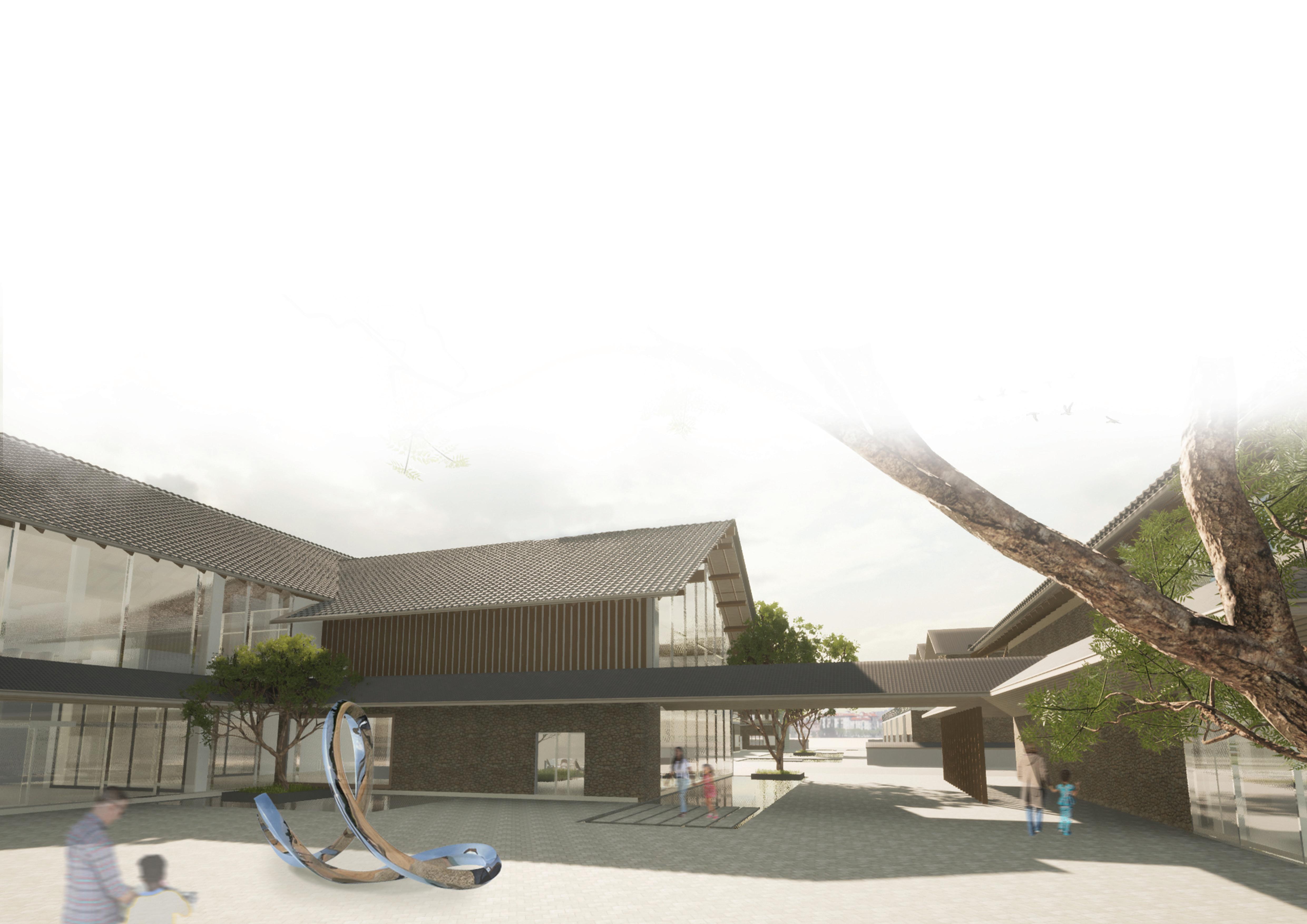 The site is divided into two areas, A and B. The tourist information center and exhibition area are located at site A, while site B is provided for artists as a mixed commercial and residential housing area. The main entrance leads to a public space that is filled with sculptures and ponds creating a beautiful landscape for tourists to enjoy. In accordance to the concept of this art village, the buildings use stone as its main material and is enhanced with modern materials such as wood facade and steel structure.