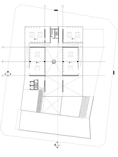 The concept of this dormitory building is derived from an L-shaped mass. The shape forms 2 area division for 2 different room types (2 person and 4 person room). The L shape forms a large open space in the middle of the building which provides a large space for people to gather and do their activities. Developed from this concept, the open space is widen 30 degree into a 120 degree open space to provide even larger space. The 2 separate areas have one buffering space in the middle which functioned as indoor gathering space, and public facilities with a small garden at every floor to provide greenery and nature feels.