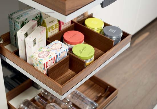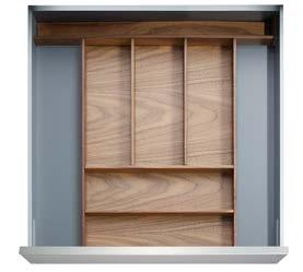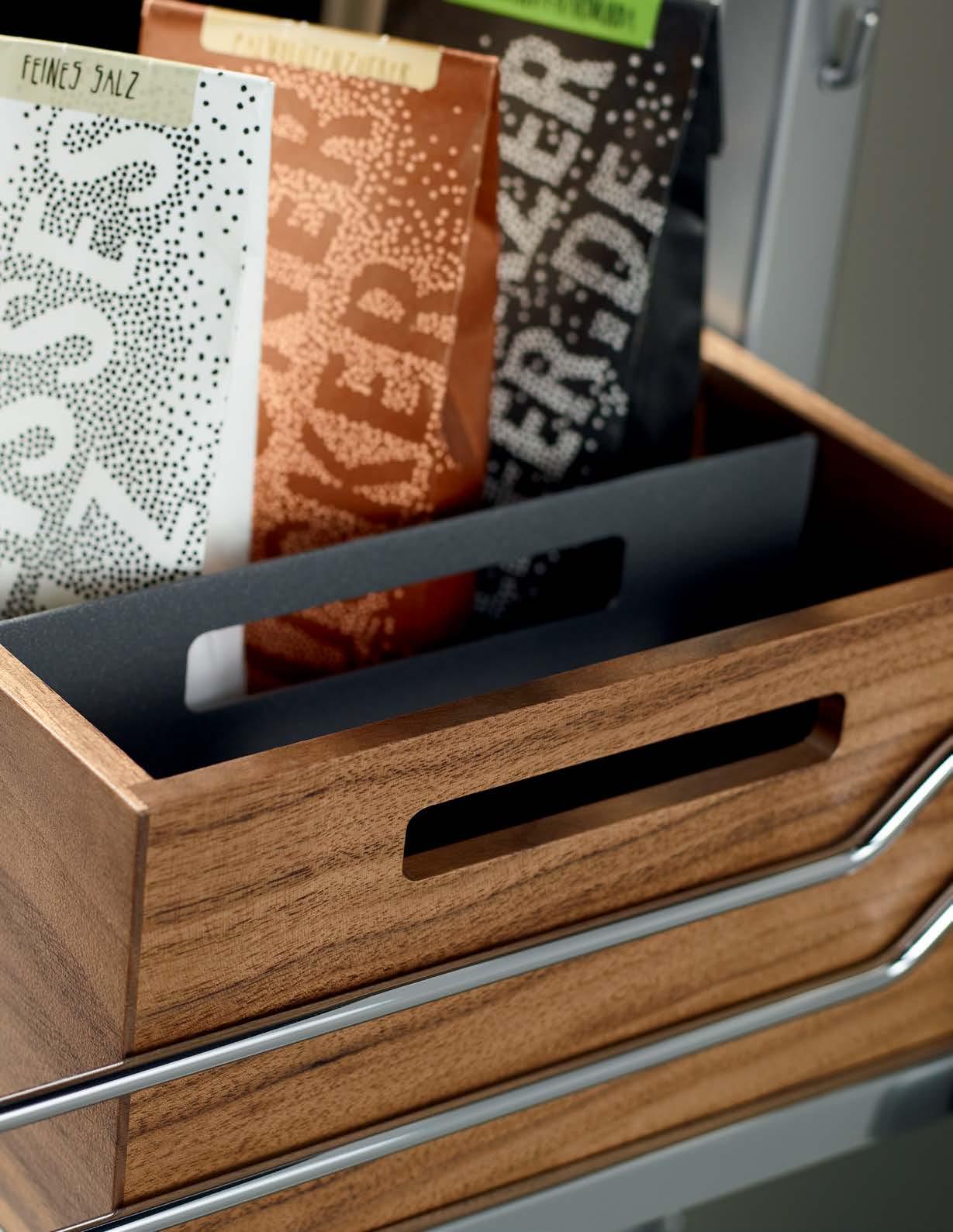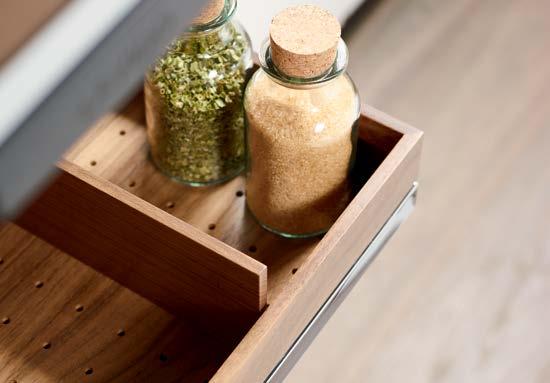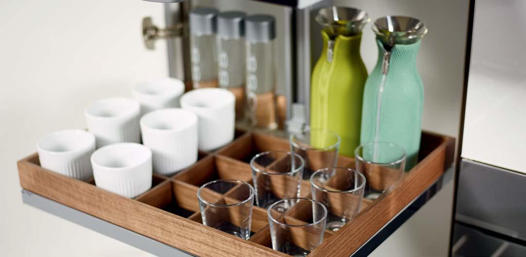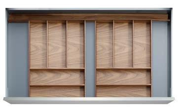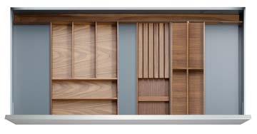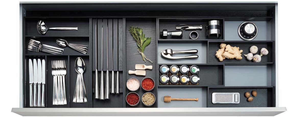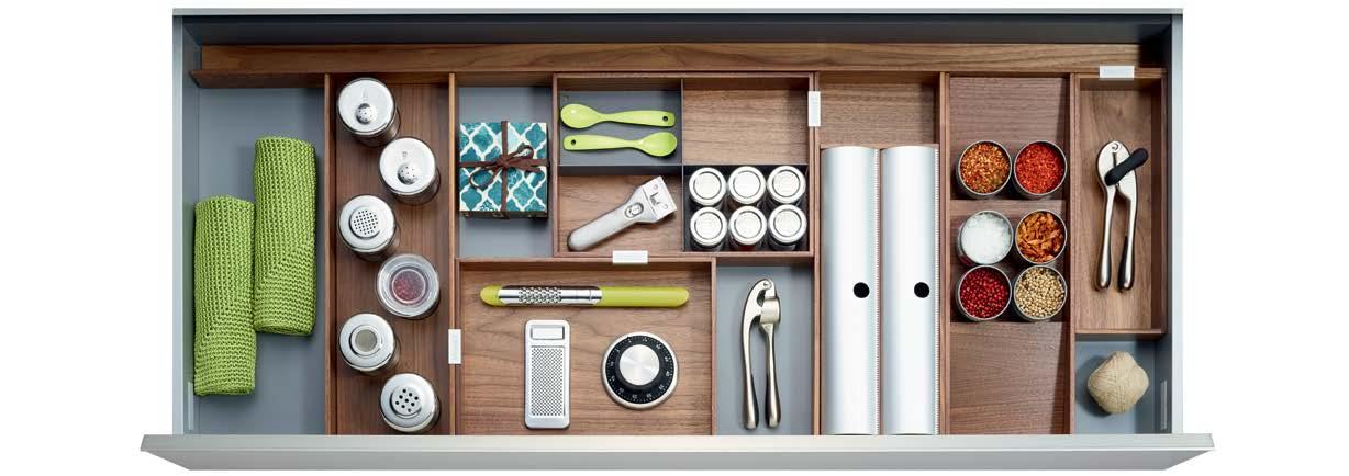 THE STRAIGHTLINE PRODUCT LINE IS COMPRISED OF CAREFULLY HANDCRAFTED PIECES that can be mixed and matched to create a huge range of organization systems—for drawers, deep drawers, and Kesseböhmer’s Dispensa and Lavido pantries.