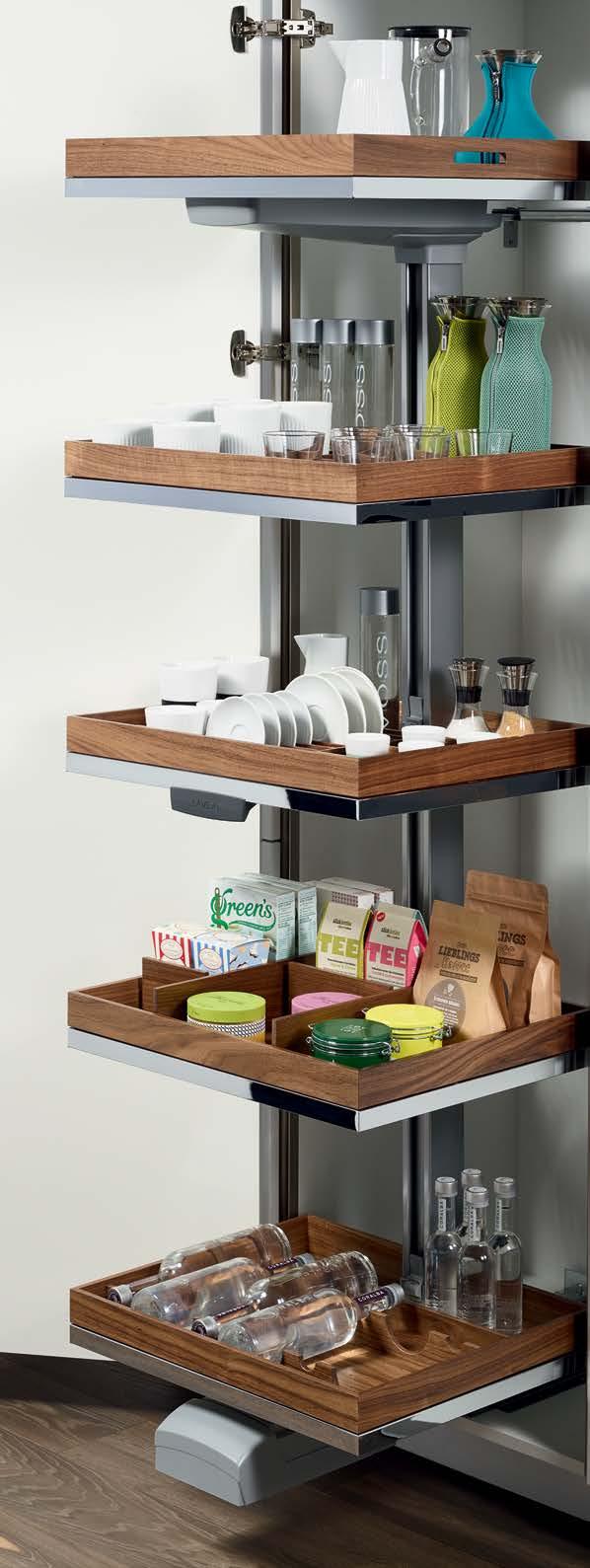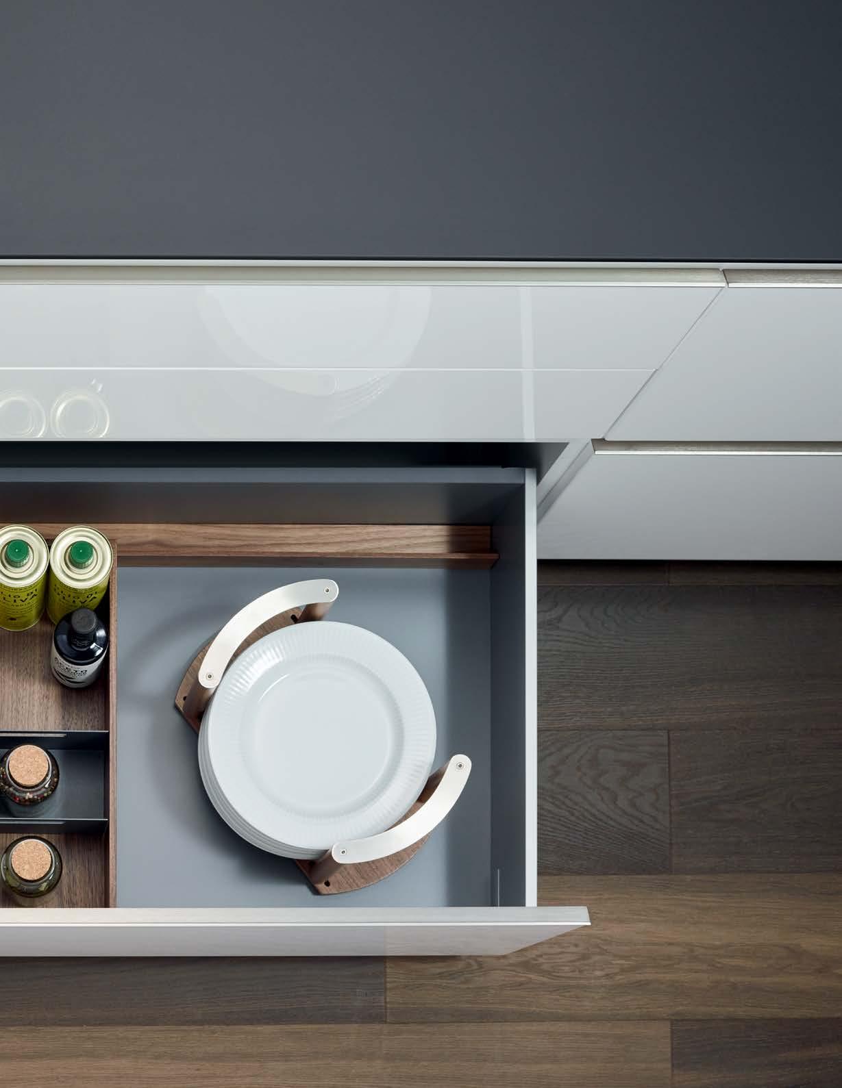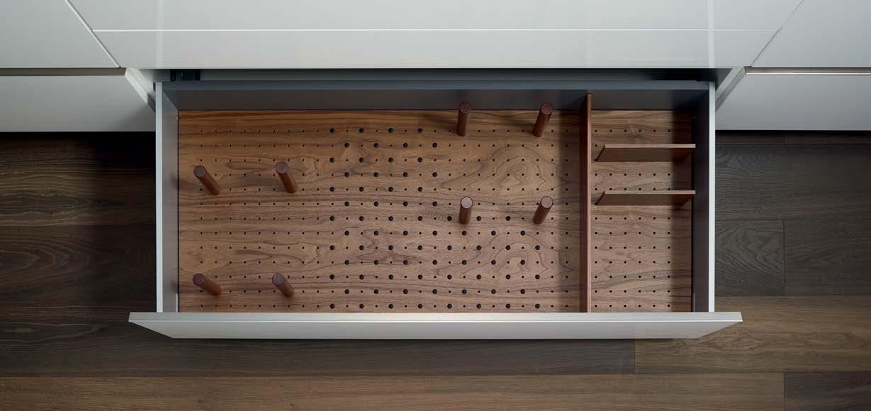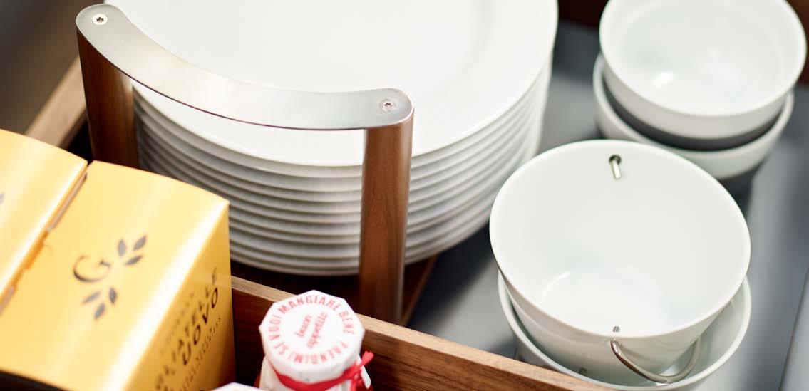 THE STRAIGHTLINE PRODUCT LINE IS COMPRISED OF CAREFULLY HANDCRAFTED PIECES that can be mixed and matched to create a huge range of organization systems—for drawers, deep drawers, and Kesseböhmer’s Dispensa and Lavido pantries.