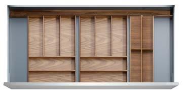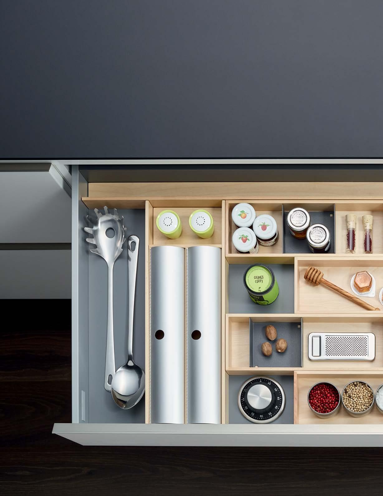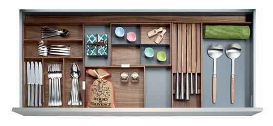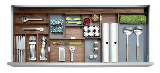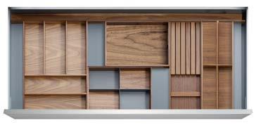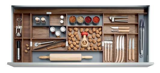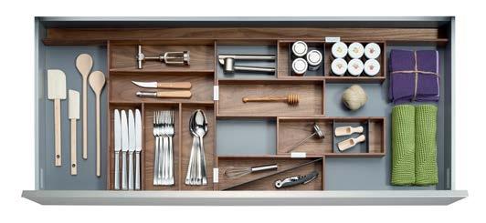 NOW THE INSIDE OF YOUR DRAWERS CAN BE JUST AS BEAUTIFUL AS THE REST OF YOUR KITCHEN. Each element serves a specific purpose, such as our foil and plastic wrap dispenser, knife block, and versatile pieces like our drawer boxes and multifunction inserts, so you can truly customize each drawer.