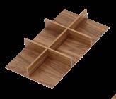 Cross divider ⅓ width of shelf creates 6 compartments, each sized 4 ⅛” x 3 5/16”