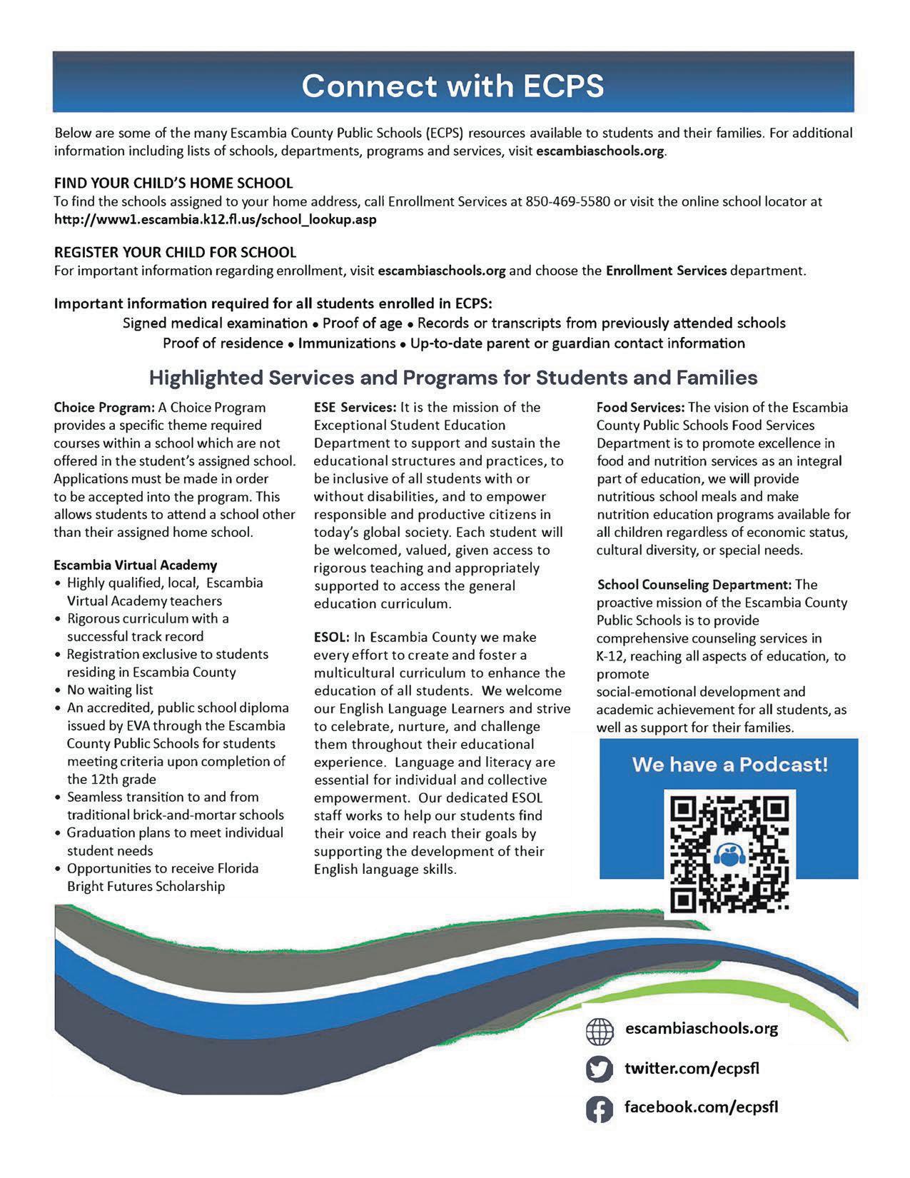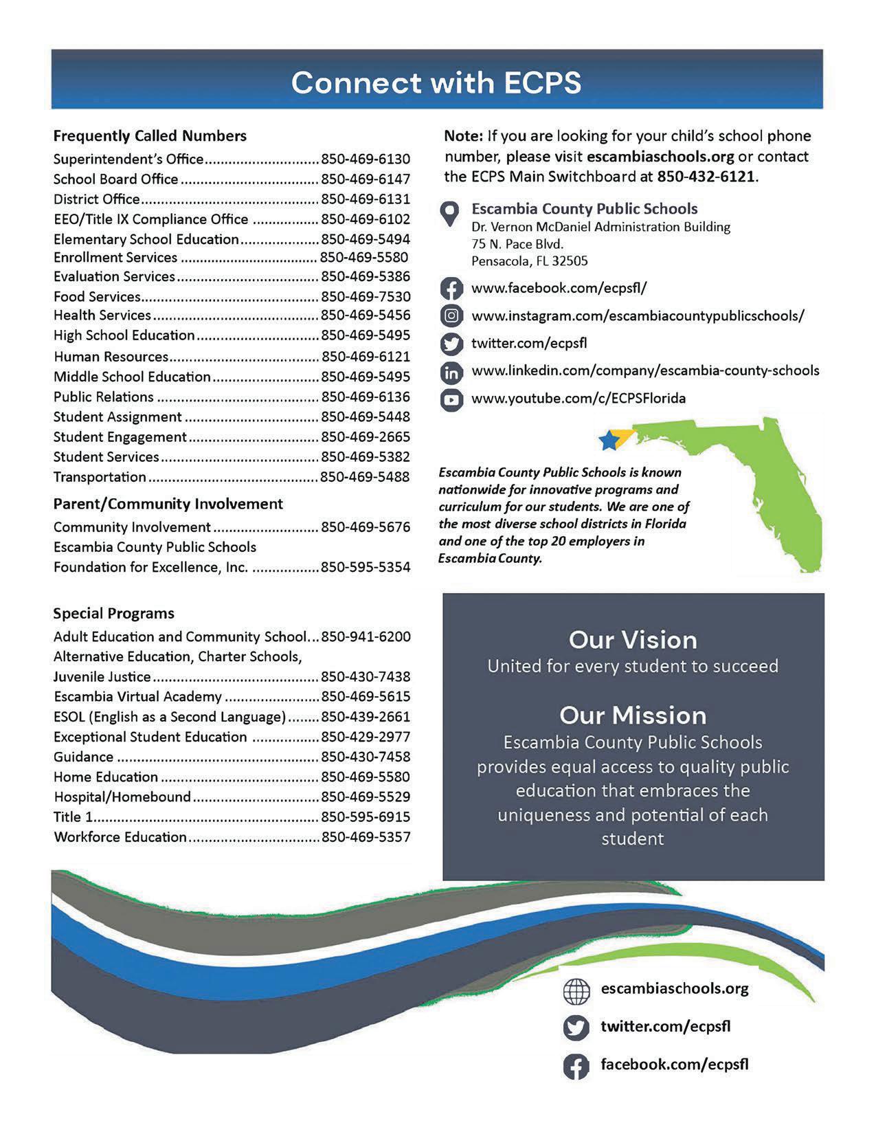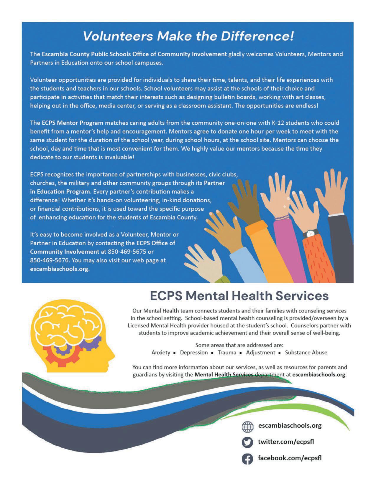 Includes: 8 Community Resources 35 Escambia County Public Schools Information 61 Early Childhood Education Options Helpful Tips & Tricks: 44 Vaping and Youth 46 Handwashing Tips 50 Mental Health 58 Mental Health Supports