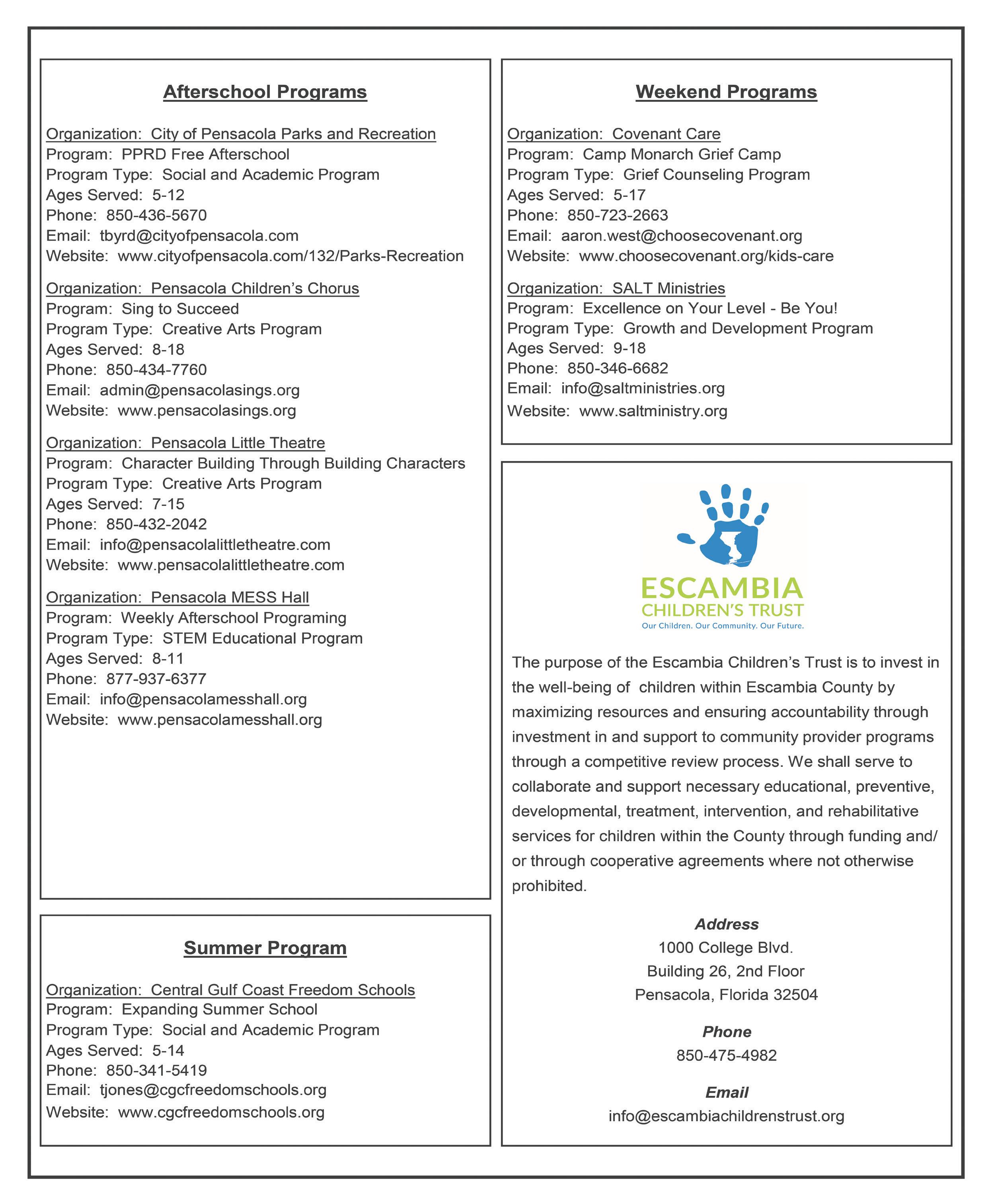 www.EscambiaChildrensTrust.org | Facebook: facebook.com/EscaChildrensTrust