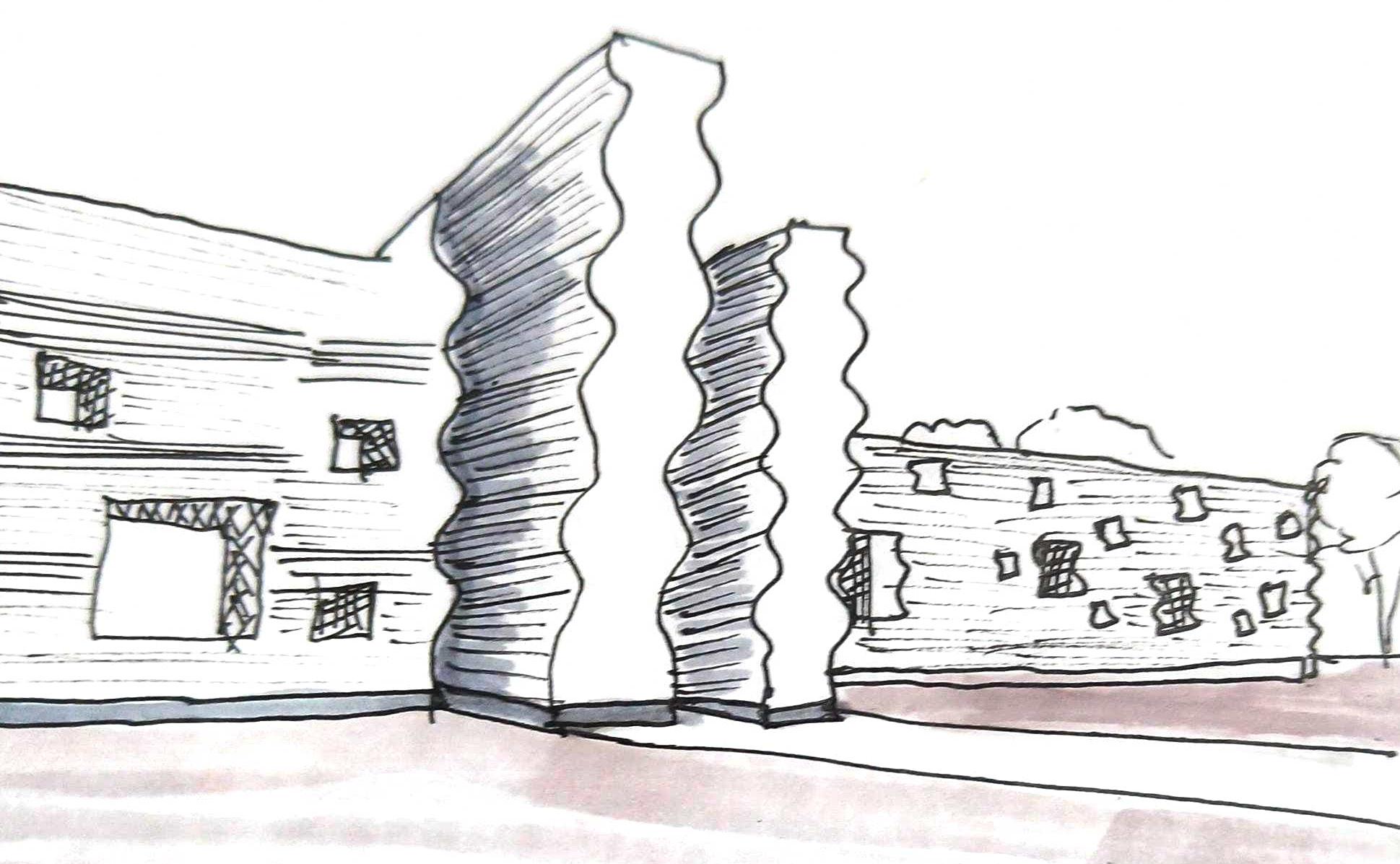 •Built form has been kept low ranging from one to three floors. This is further enhanced by the use of parapet walls for upper floors, which