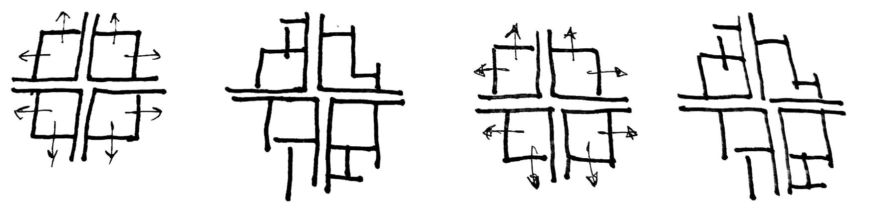 form a grid like pattern, with alternating squares of built and open space.