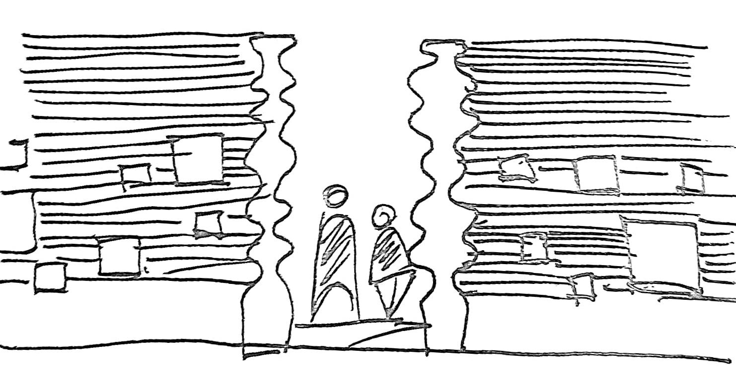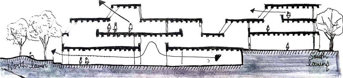 To facilitate interaction between student and faculty. The main academic block develops around the plaza. The four-wing faculty and administration block, library and classroom define the edge of plaza. Act as transition space between classroom and admin. It is a well-defined space by the fenestration.