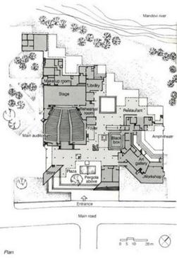 •The ‘pergola ‘above the entrance acts as an extension to the foyer of the main auditorium and amphitheatre.