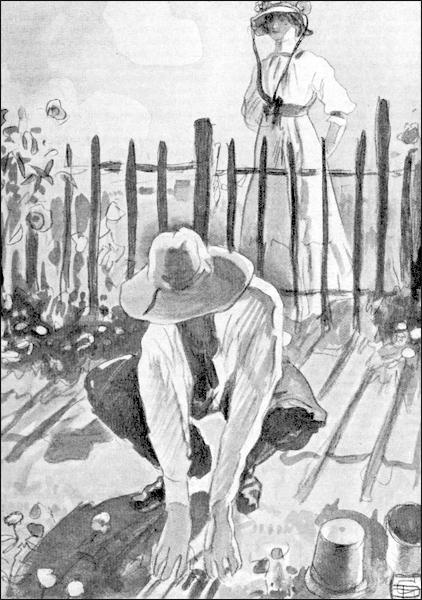 La petite personne, en passant devant le jardin, n’aperçut que le dos de M. Fauche, à croupetons devant ses pots, dans le gondolement de sa chemise en grosse toile bise. Il parut déterminé à l’ignorer, s’absorba dans une contemplation obscure. L’ombre de ses fortes mains grattait sans nécessité la terre. Mademoiselle Noémie s’entêta: il la sentit derrière lui; le chapeau de paille à son tour fit une ombre qui recouvrit l’ombre de ses mains.