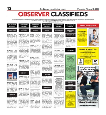 The Observer newspaper has operated continuously since May 14, 1887. It covers the towns of Kearny, Harrison, East Newark, North Arlington, Lyndhurst, Nutley, Belleville & Bloomfield.