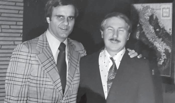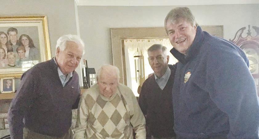 The late Charlie Dolan (second from left) is seen with legendary basketball icon Bill Raftery (far left), the late Fran Raftery, Bill’s brother, and sportswriter Jim Hague in this picture from 2017. Photo courtesy of Jim Hague.