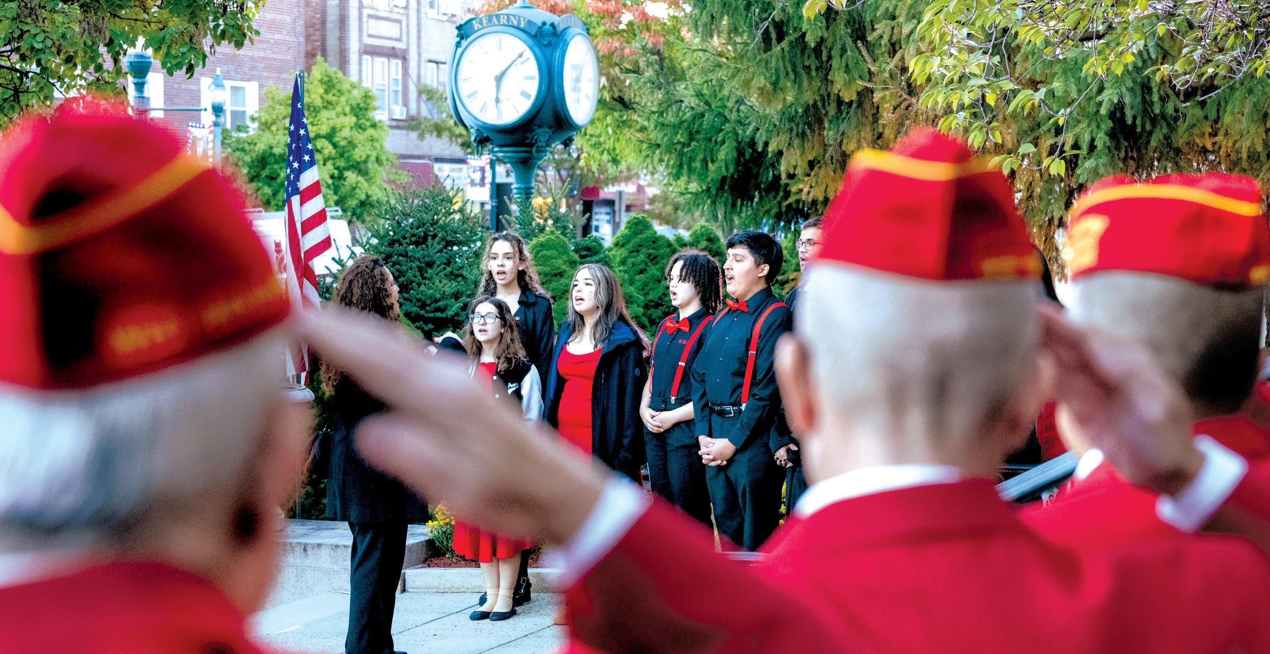 National Anthem at the Town Hall “Hometown Heroes” dedication ceremony, paying tribute to local veterans on Wednesday, Oct. 16, 2024 (seen in photo). In a proud moment for our school, vocal music director Gonzalez, accompanist Ms. Crispo and the K-Birds were recognized with citations from the New Jersey State Senate and General Assembly for their exceptional musical contributions to Kearny’s Inaugural Hispanic