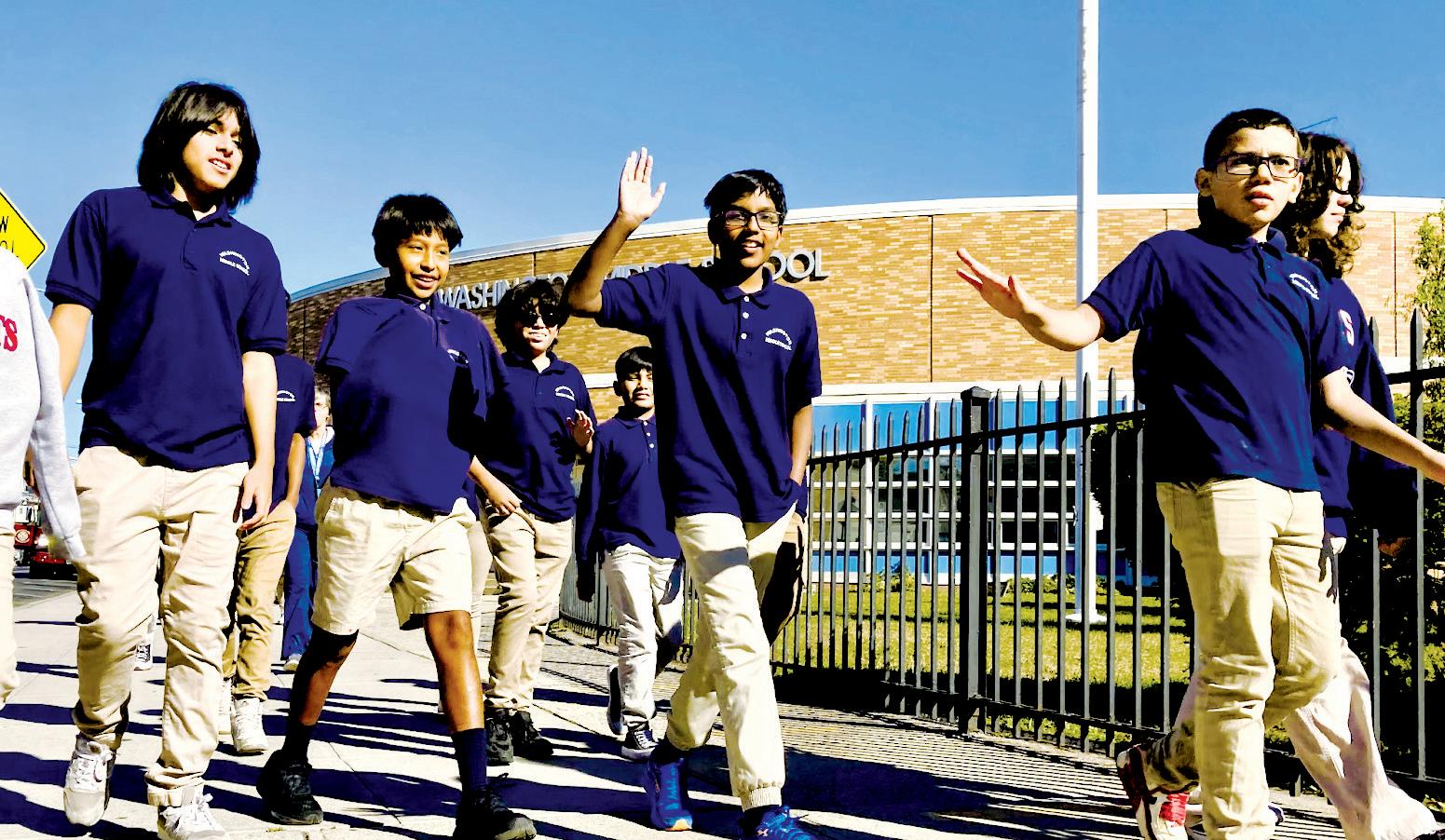 Some 450+ students at Washington Middle School (WMS) underscored the theme with a kinetic milestone, walking a literal mile around their school — that’s five trips — around the block for those keeping score. Fortunately, the weather was in full cooperation and students enjoyed the experience, as did their teachers, who came to school decked in their best walking gear.