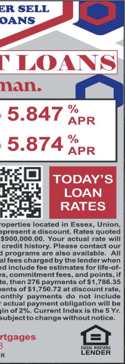 HARRISON Newly renovated. 2nd fl. 3 BR’s, LR, DR, EIK. $2200 + 1.5 months security. No pets/smoking. Avl. Now (973) 482-5532 or (862)227-6090 13W03