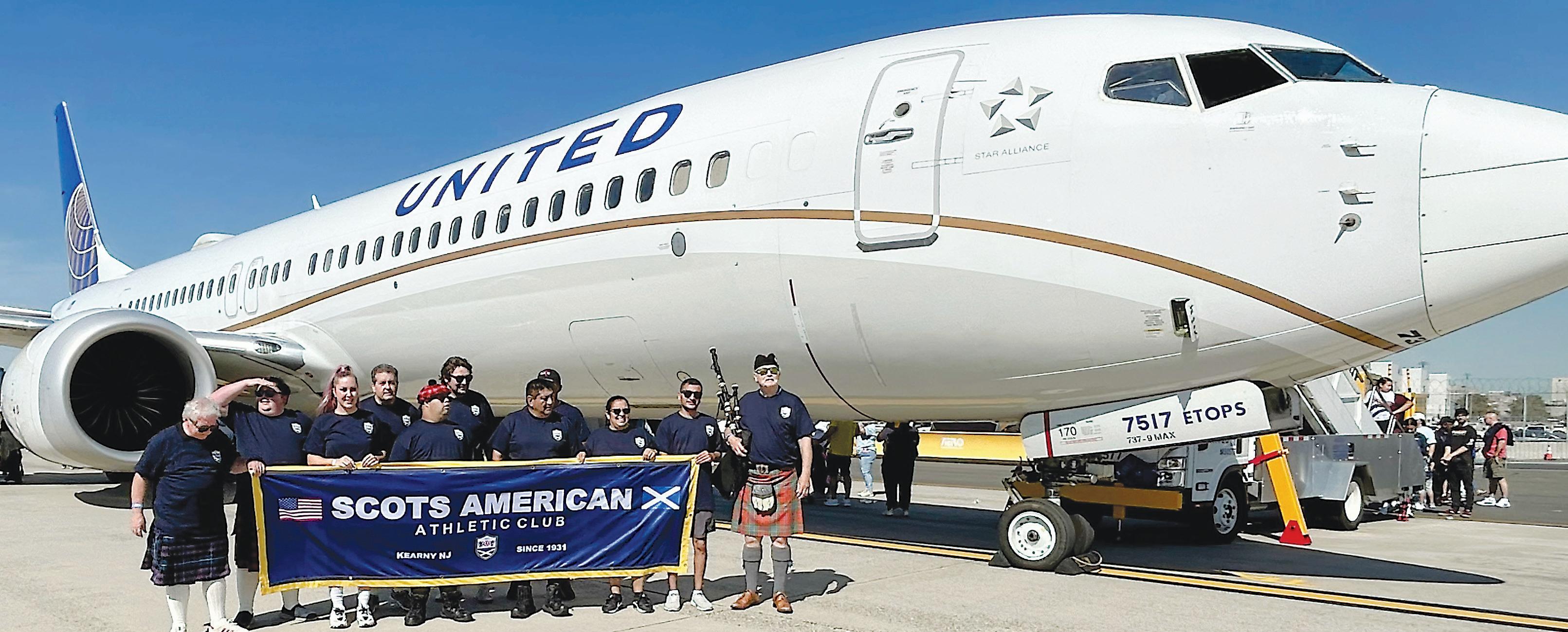 The Scots American Athletic Club of Kearny took part in a fundraiser for Special Olympics Saturday, Oct. 4, at Newark Liberty International Airport. The team was able to pull the United Airlines Boeing 737900 Max 12 feet to successfully complete the challenge and is seen here on the tarmac at Terminal A. A 737-900 Max weighs about 156,000 pounds while empty. Of the 33 teams who participated, the Scots Club finished at 16th.