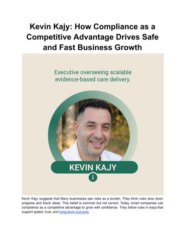 Kevin Kajy is an entrepreneur, executive operator, and management consultant with more than two decades of experience leading organizations in mortgage lending, financial services, healthcare operations, and professional consulting. He has built a career focused on operational execution, regulatory discipline, and scalable growth while working directly with owners and senior leadership teams. He founded and leads a management consulting firm, partnering with decision-makers to improve performance, strengthen leadership systems, and prepare businesses for long-term expansion. He also co-founded and operates a behavioral health services organization that delivers evidence-based care within structured, compliant, and repeatable operating models. Kevin began his career in financial services, developing deep expertise in sales execution, compliance standards, and pipeline management. As responsibilities expanded, he moved into leadership roles overseeing teams, coordinating operations, and managing performance across changing market conditions. Over more than 15 years, he served in senior leadership roles in regulated lending environments, overseeing staffing, production, training, quality control, and adherence to evolving regulatory frameworks. After establishing himself as a senior leader, Kajy transitioned into ownership and executive operations. His consulting work emphasizes practical application, performance metrics, and organizational clarity, informed by firsthand experience building and operating companies. In healthcare operations, he applies the same discipline to licensing, documentation, and oversight, aligning clinical delivery with financial sustainability. Kevin Kajy measures success by durable results, independent leadership, and organizations that perform consistently over time. He lives in Michigan with family, maintains a structured routine, prioritizes personal discipline, and remains engaged in community service and local involvement.