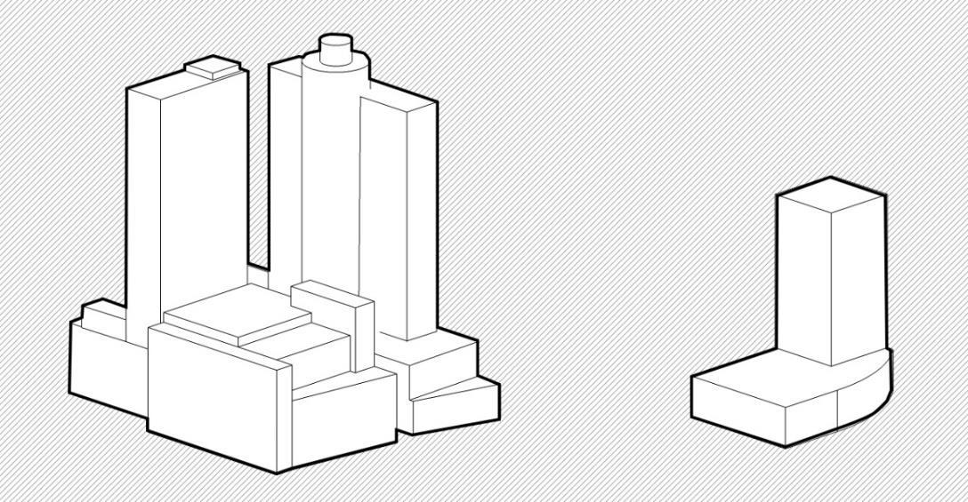 Below are the diagrams which represent the original massing of the selected buildings. The massing block will be utilized as a foundation and starting point for analysis and iteration studies.