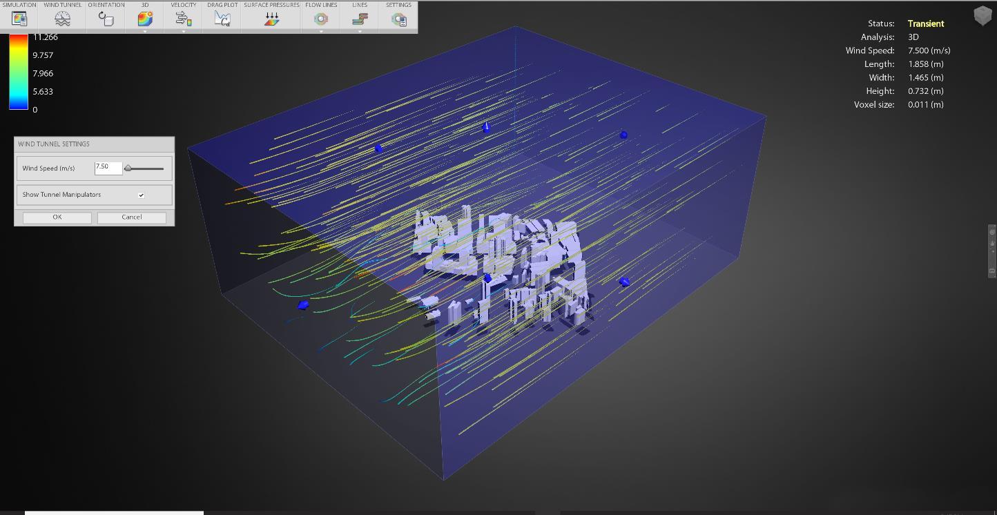 The simulation test proves that the hypothetical airflow are correct. The direction of flow lines indicates that the implementation of frontal density and drag coefficient