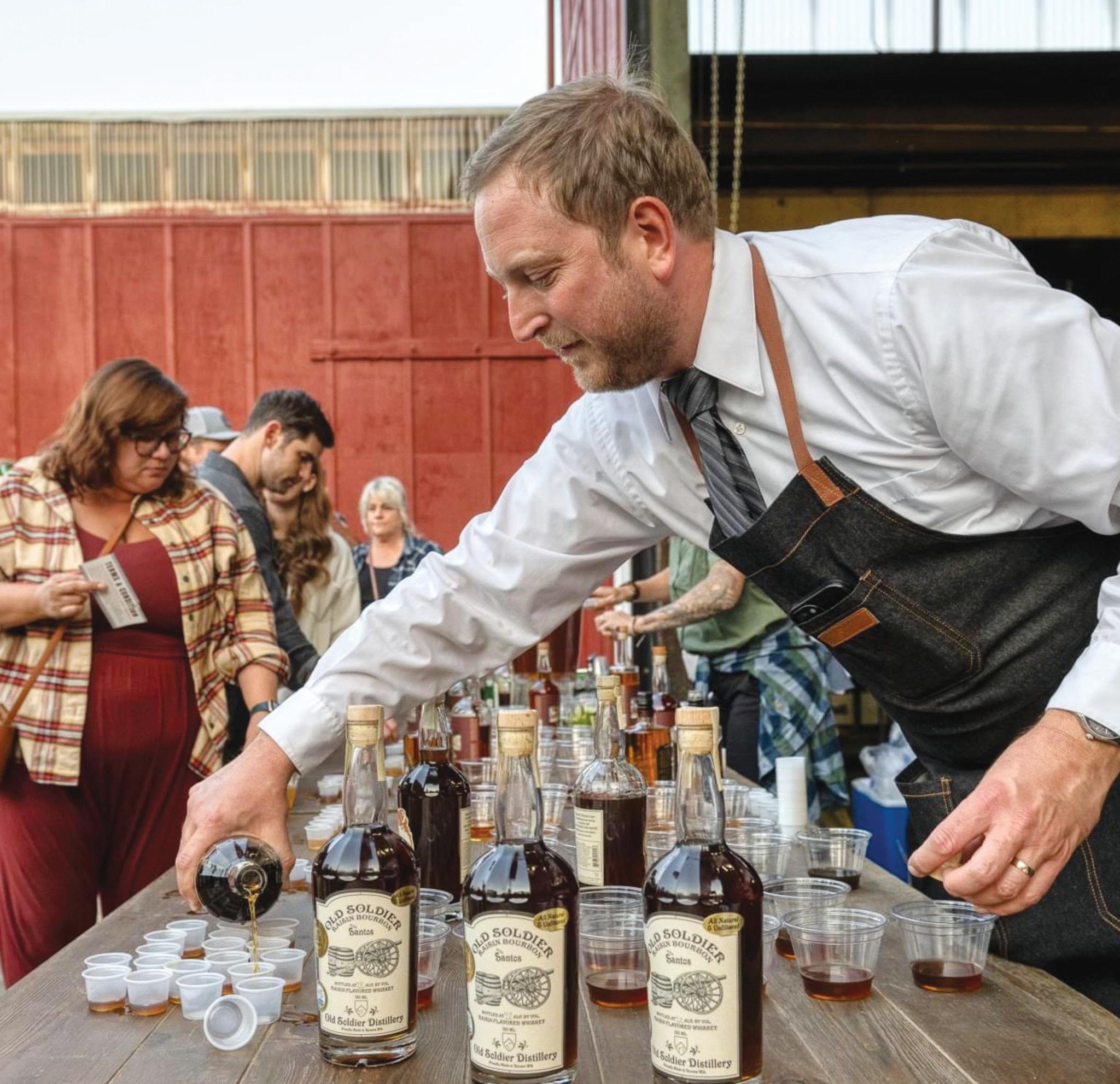 Old Soldier samples four of its fourteen varieties on the train excursions, including its top seller: a fruit-infused version similar to a sangria, which was inspired by a whiskey in Greece, said Joe Bennett, distillery operations manager.