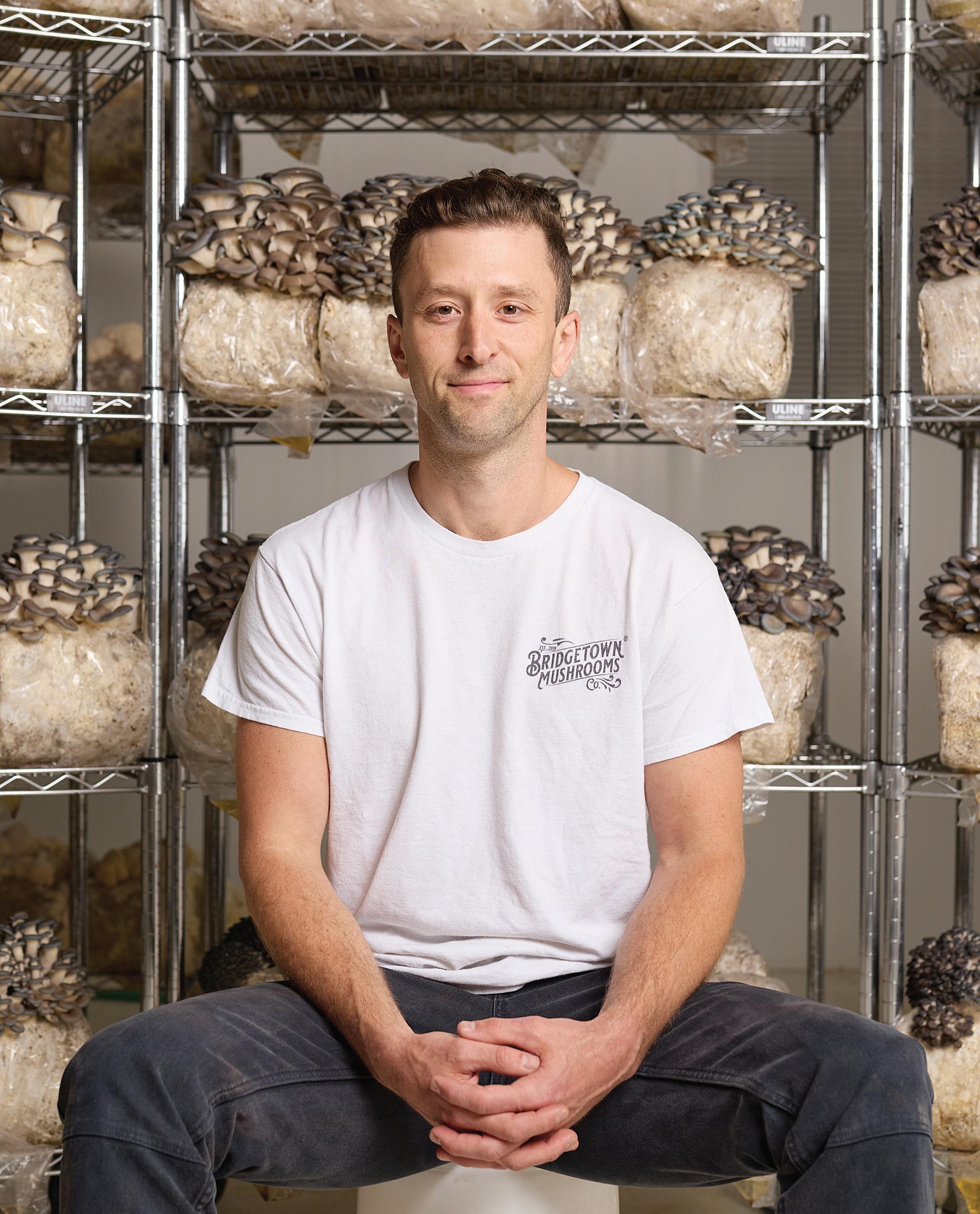 “Photographing Trevor Huebert of Bridgetown Mushrooms was a delight and an unexpected look into mushroom cultivation. Inside the warehouse, each species thrived. What could have felt industrial instead felt visionary—a space transformed by care, curiosity and creativity, and proof that purpose can grow even in the most unlikely places.” (pg. 24)