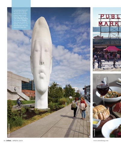 CLOCKWISE FROM LEFT The Olympic Sculpture Park features more than a dozen huge art works and is free. Wander the stalls at Pike Place Market. The Center for Wooden Boats features hands-on learning. Lecosho is a very nice restaurant with a very reasonable happy hour.
