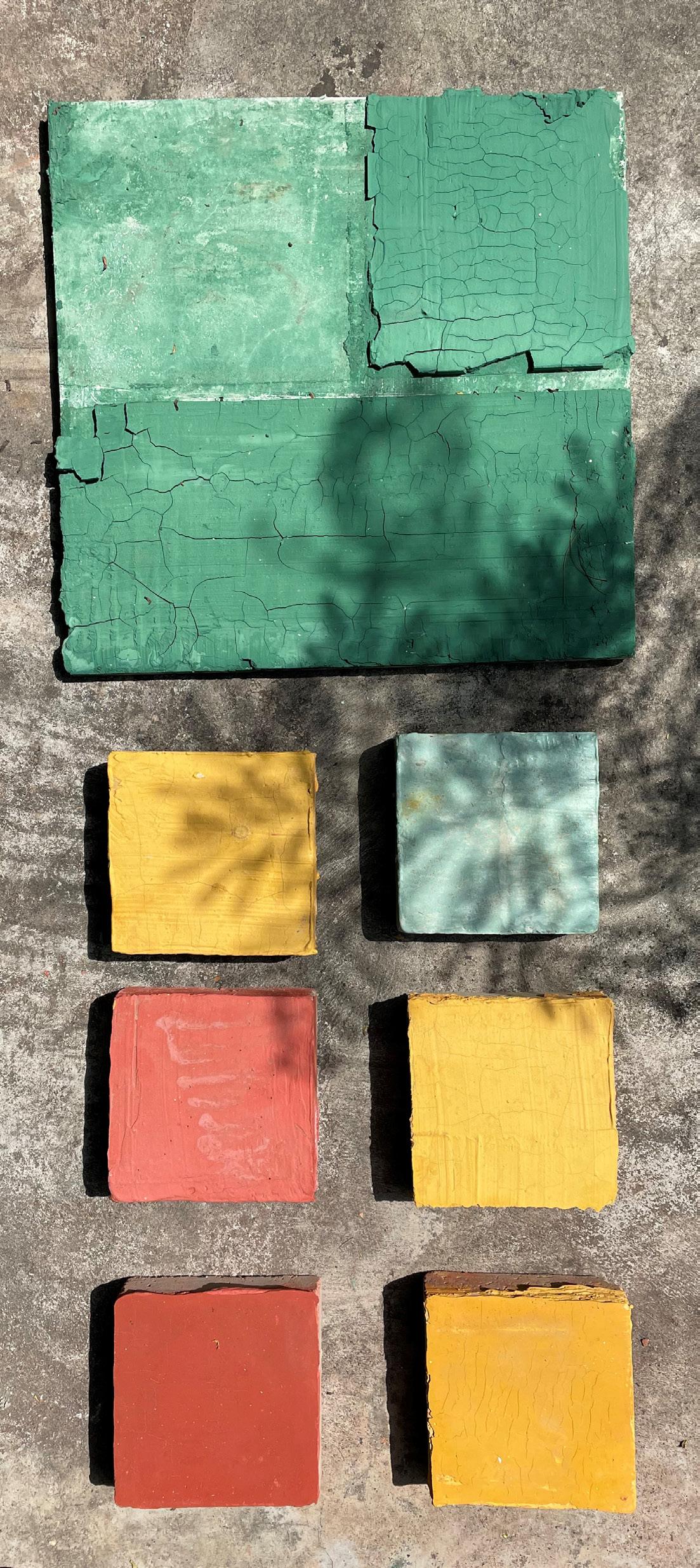 The assignment was to study and experiment with different building materials. Therefore, we choose to explore the conventional flooring techniques, such as terrazzo and oxide flooring. We experimented with it and created samples in the form of tiles that were 60 by 60 cm and 15 by 15 cm for the study. To further investigate the results, we tried varying the ratio of each content.