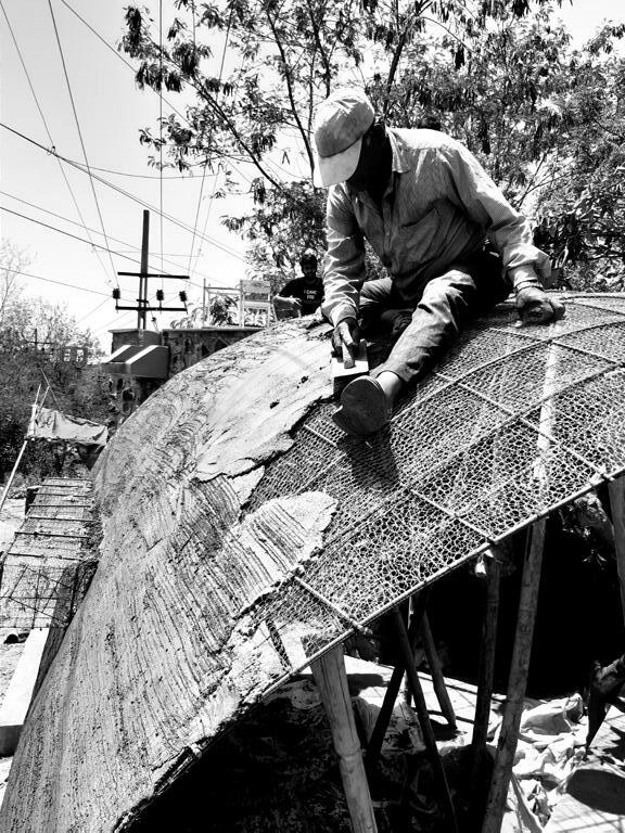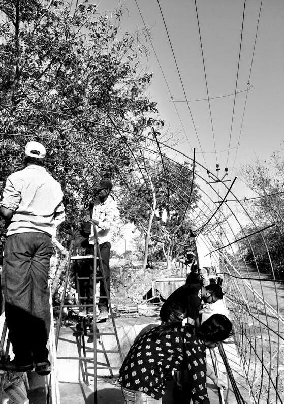 It was conducted by Ar. Arjun Doshi To understand and work with the material. Basically main content of the Ferrocement were: Mesh + Cement + Sand. So we constructed a Shell out of a Ferrocement which acts as a roof for the Canteen wash area in our College campus