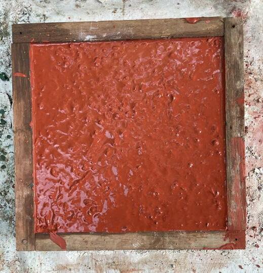 In this base mixture red pig ment is added to the white cement and marble chips mortar before addin the water