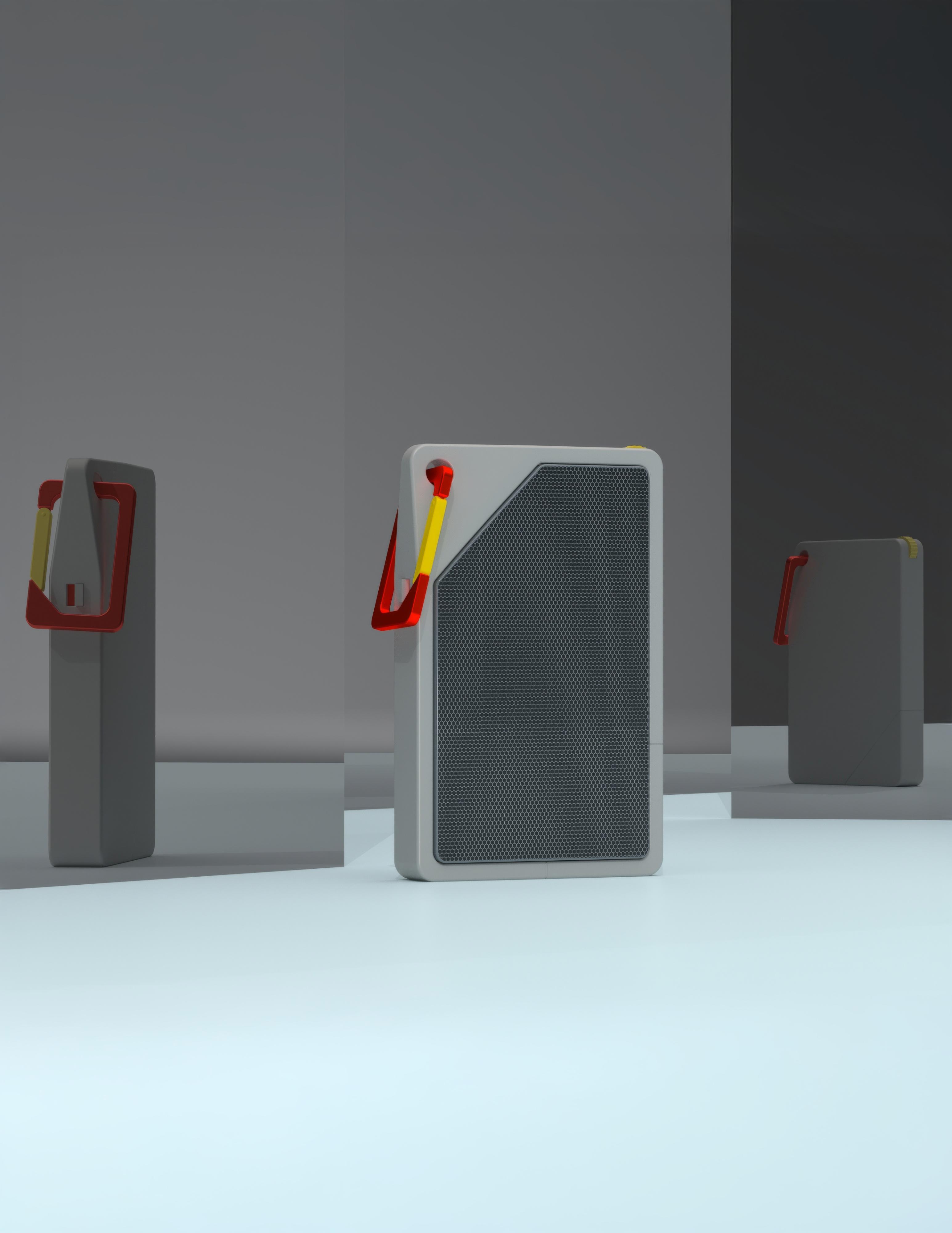 The primary goal was to create a speaker that fits the persona’s active lifestyle—portable, durable, and easy to use. The design also needed to incorporate intuitive visual cues, ensuring that users immediately understand its portability and interaction features. The handle design, color choices, and overall form were driven by semiotic principles, where each detail conveys a specific message about the product’s use and functionality.