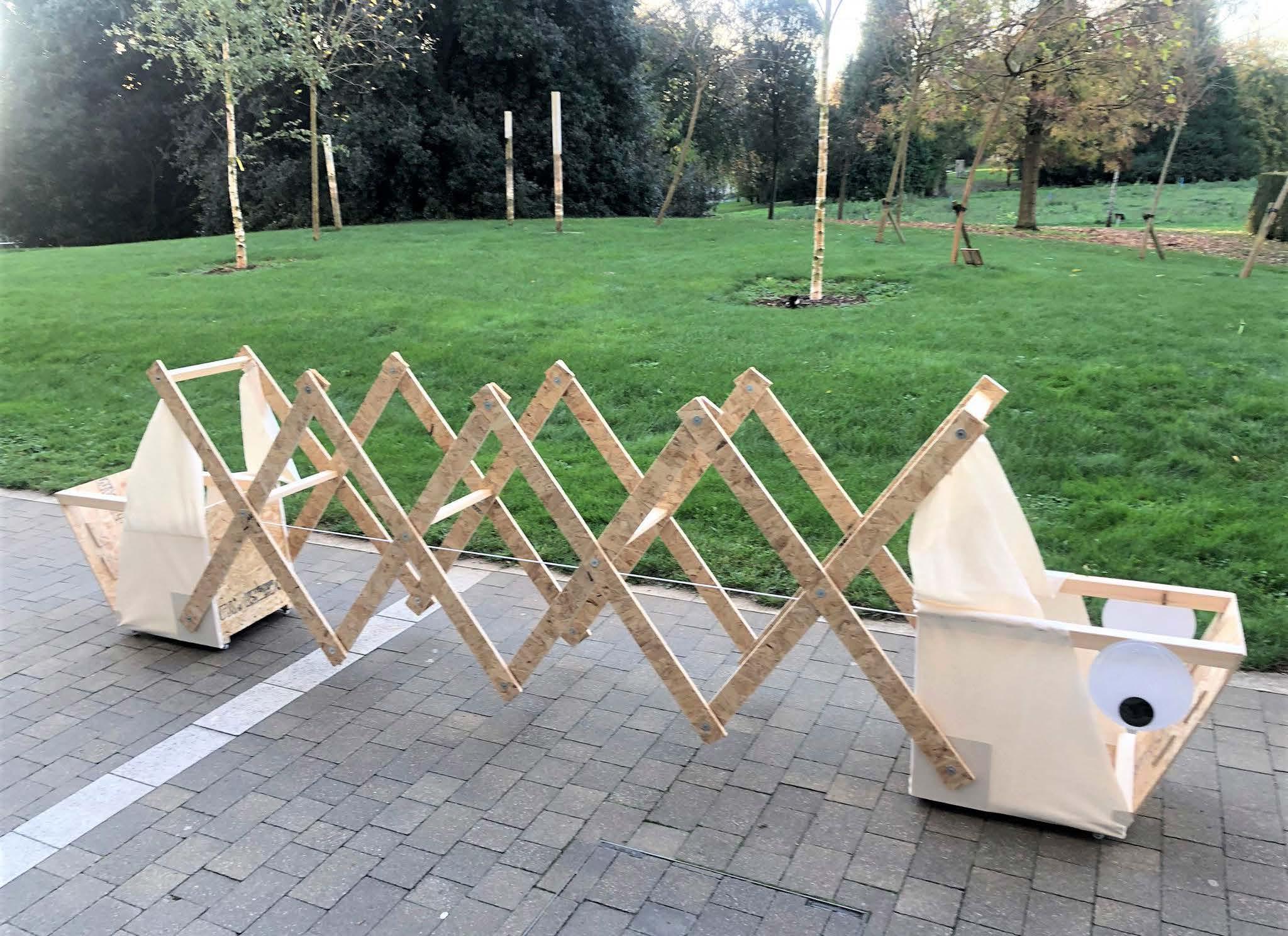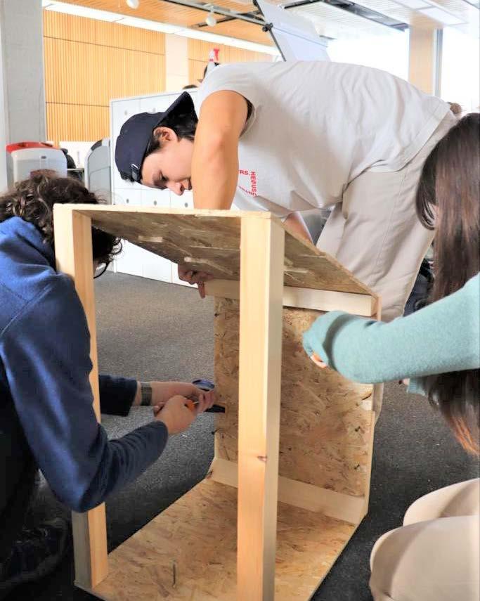 OSB boards, Softwood, Canvas, Nylon string 4m span, supporting 50kg load Hand-drill, saw, screwdriver, pen, paper 2022 - 4 week group project - Year 1