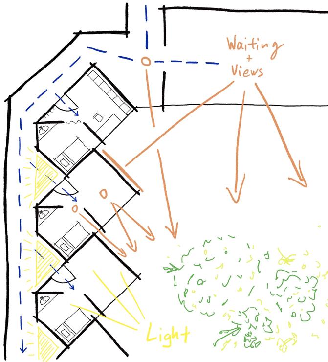 Modest, functional and dictated by orientation, light, views, materiality.