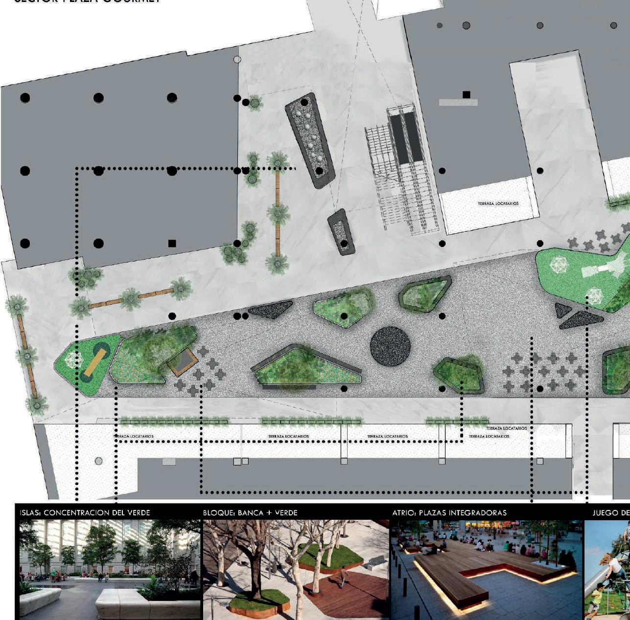 SE PLANTEA AL USUARIO AMBIENTES DE OCIO DISTRIBUIDOS EN DIVERSAS ZONAS PARA EVITAR LA CONCENTRACIÓN DE UN SOLO ESPACIO.