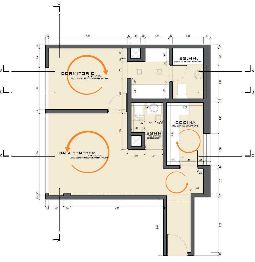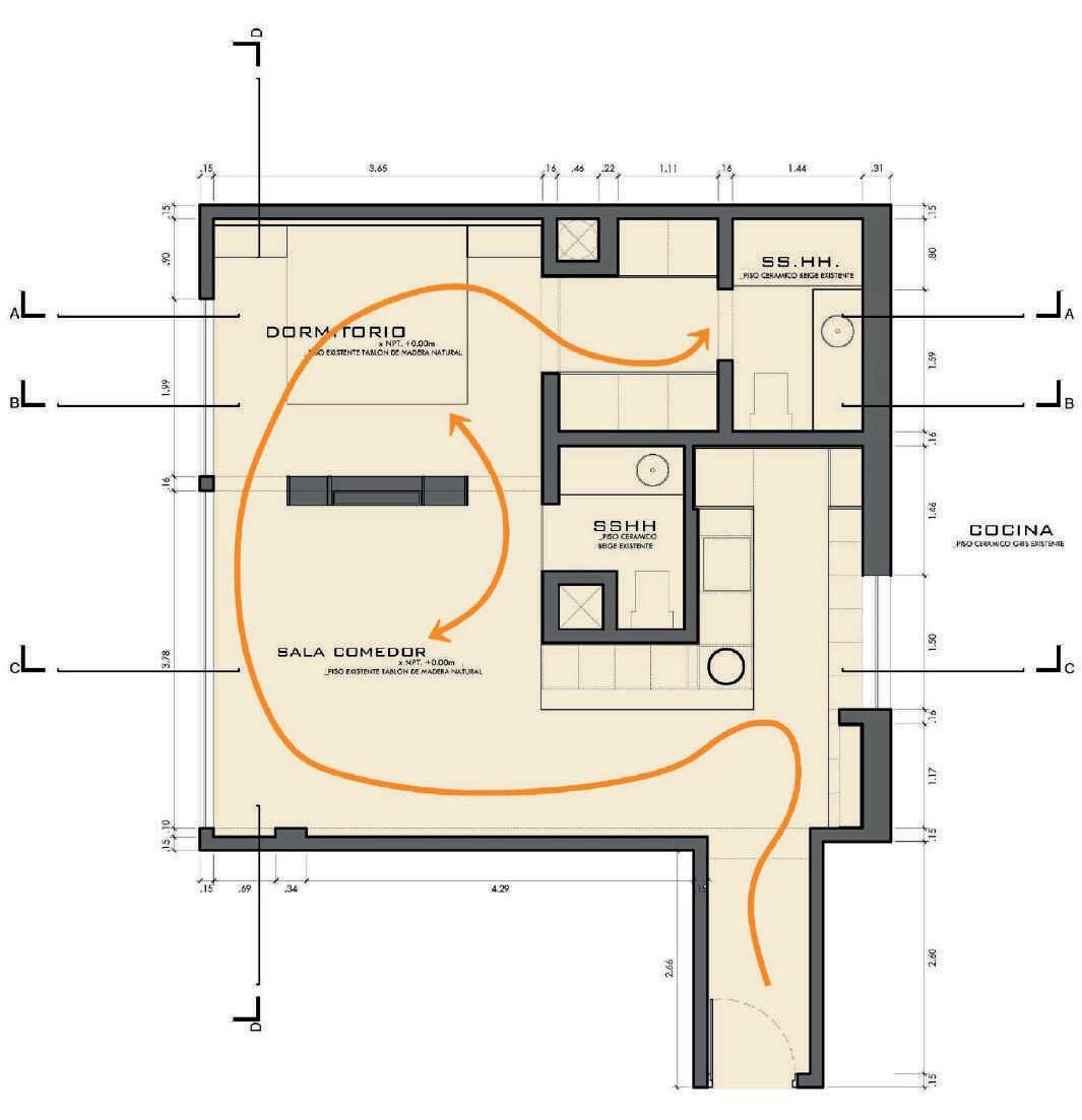 DENTRO DE LA PROPUESTA SE BUSCA INTEGRAR LOS ESPACIOS UNO CON OTROS SIN PERDER LA INDEPENDENCIA CON AMBIENTES LIMITADOR POR MOBILIARIOS.